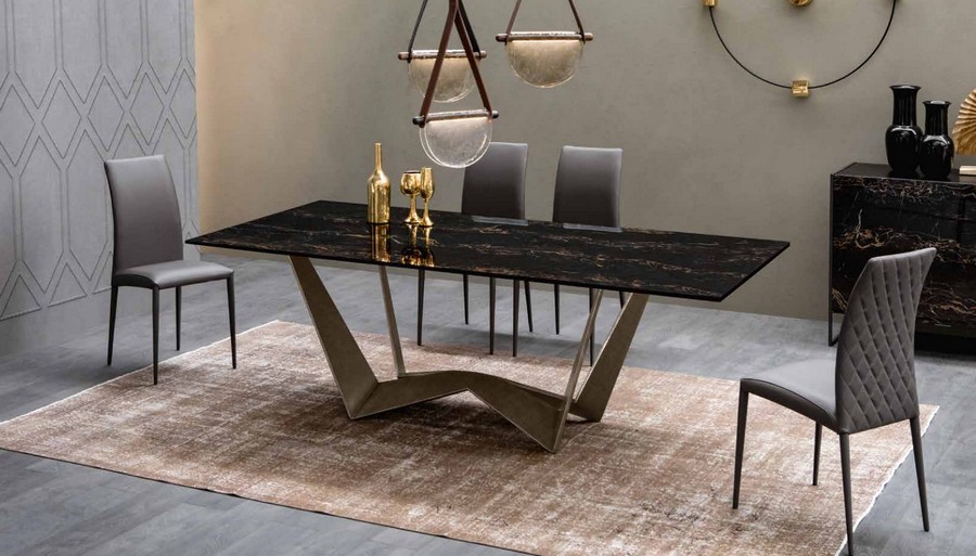 Der Reverse-Tisch von Tonin Casa ist ein fester Tisch mit einer Struktur aus lackiertem Stahl und einer Stein- oder Porzellanplatte aus Steinzeug. Reversible Tischbasis. Ein reversibler Tisch, der für jede Umgebung geeignet ist. Die asymmetrische Form der in verschiedenen Ausführungen lackierten Stahlbasis ist sehr elegant. Die Oberseite kann in Glas- oder Porzellansteinzeug geliefert werden.