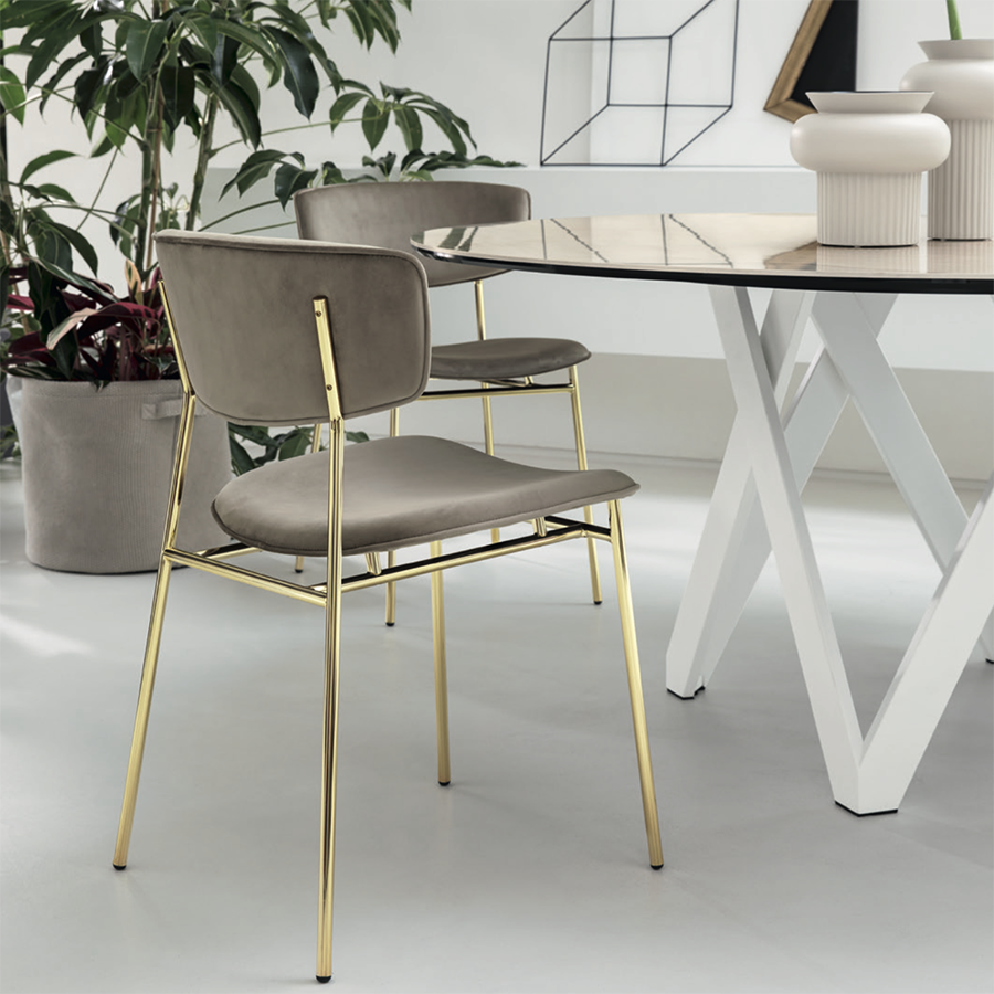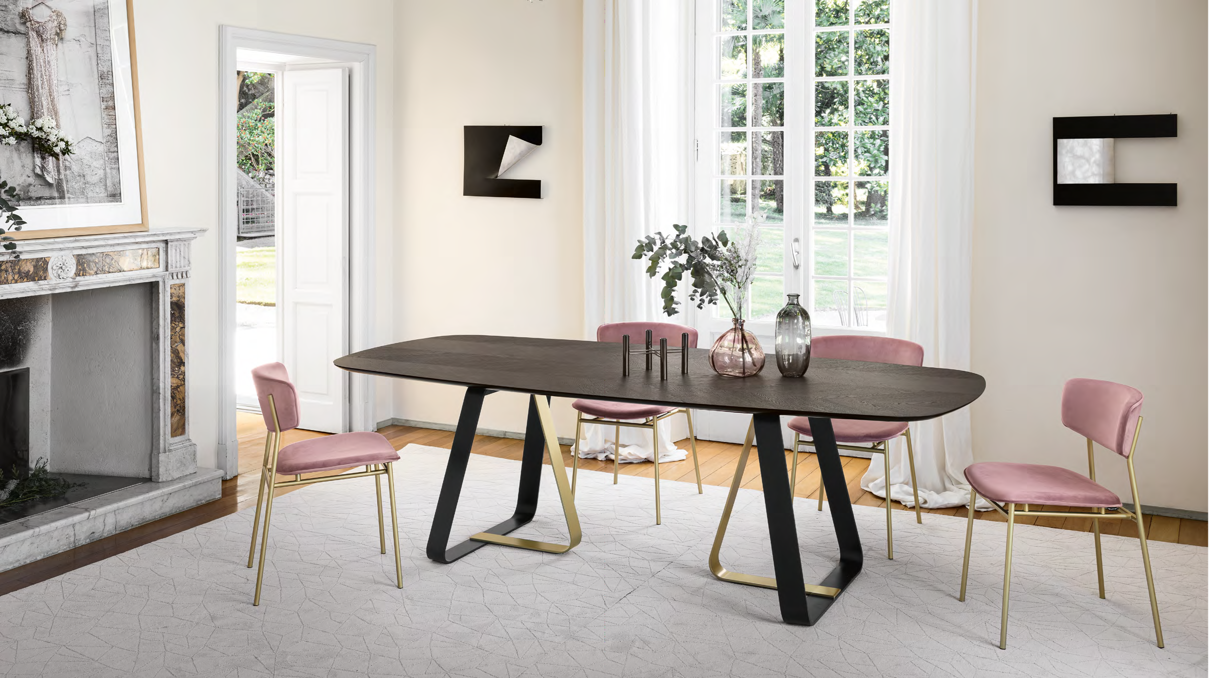 Im Einklang mit den Trends dieser Jahre zeichnet sich FIFTIES durch seine agile Silhouette aus, die das Metall der Struktur mit klassischem und raffiniertem Samt, Leder oder Kunstleder mit seidigem und weichem Griff kombiniert.