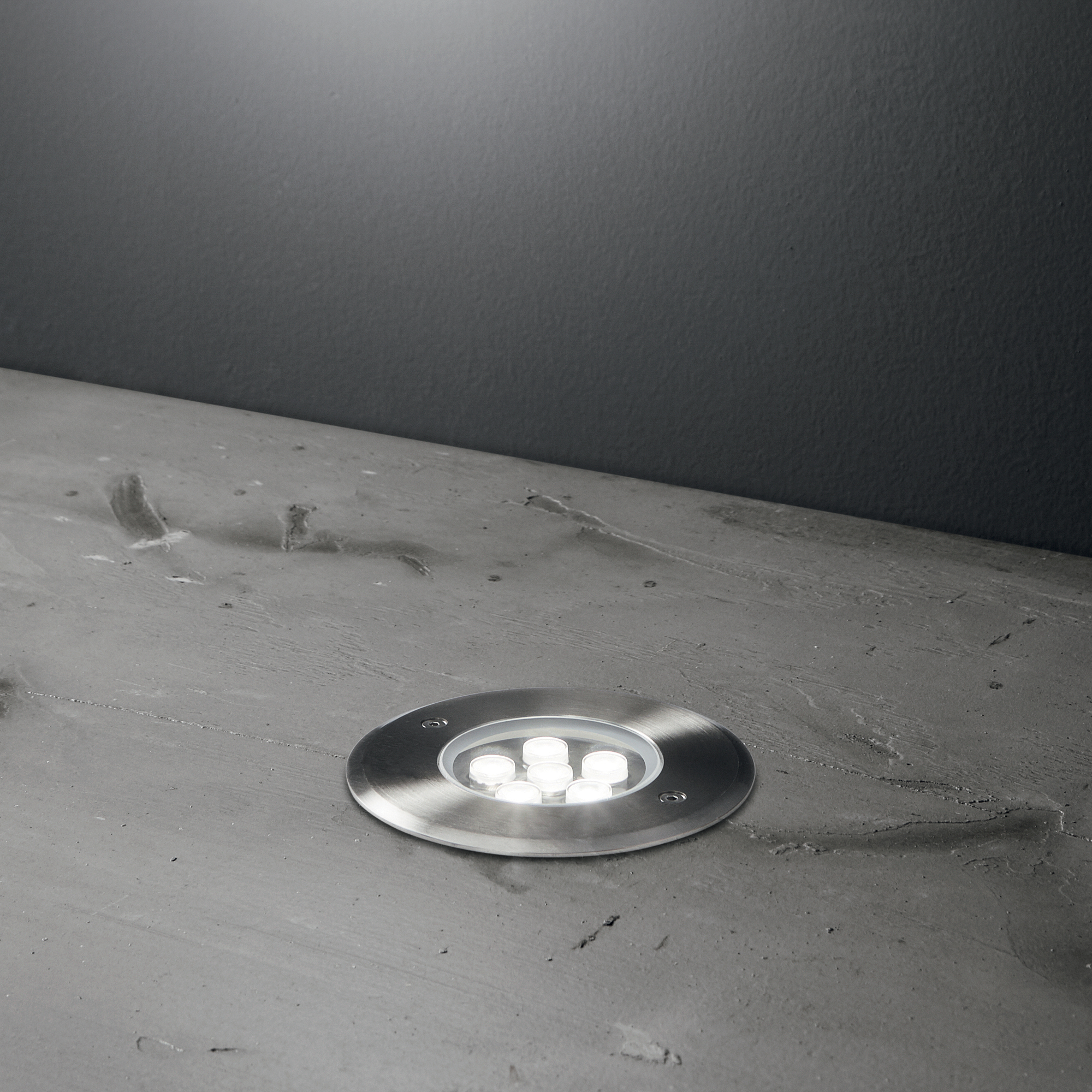 Feststehende Einbauleuchte für den Außenbereich aus Aluminiumdruckguss mit runder Blende, erhältlich in drei Größen, geeignet für den Einbau in Boden und Boden. Eloxiertes Aluminiumgehäuse mit Diffusor aus extraklarem Hartglas. Integrierte passiv gekühlte LEDs mit 30°-Optik; Farbtemperatur 3000 K und CRI ≥ 80; Schutzart IP 67; IK 10.