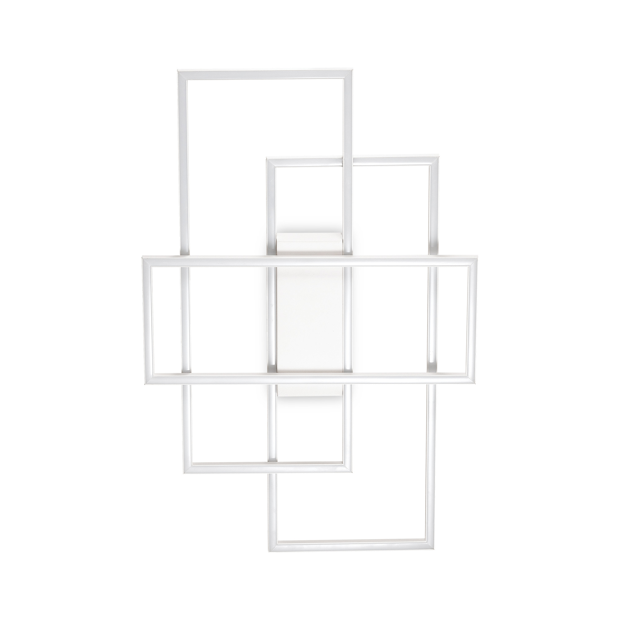 Sockel und Rahmen aus mattweiß lackiertem Metall. Diffusoren aus opalfarbenem Kunststoff. Direkte Lichtabstrahlung. 3000 K LED-Lichtquelle, 30.000 Stunden Lebensdauer.
