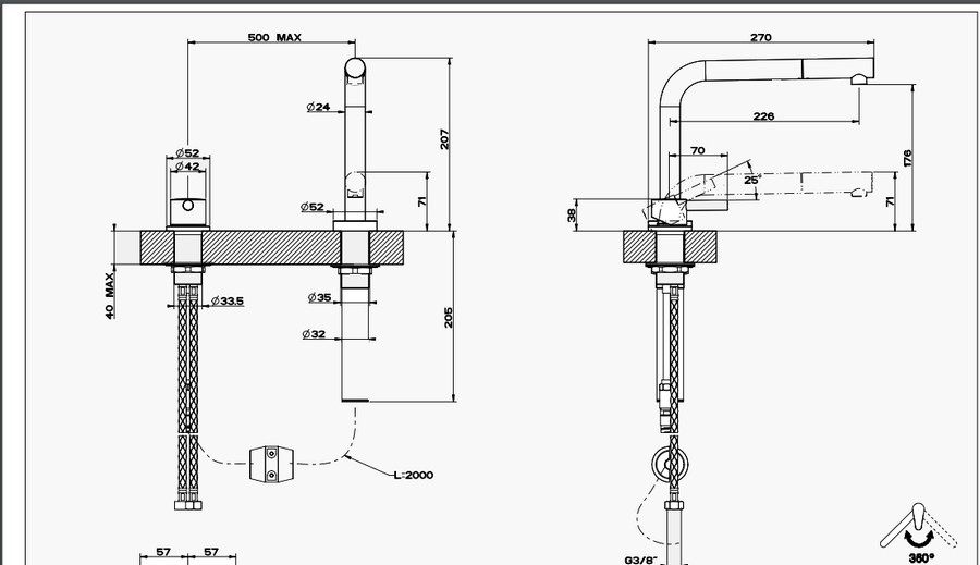 Mischerloch: Ø33,5 mm