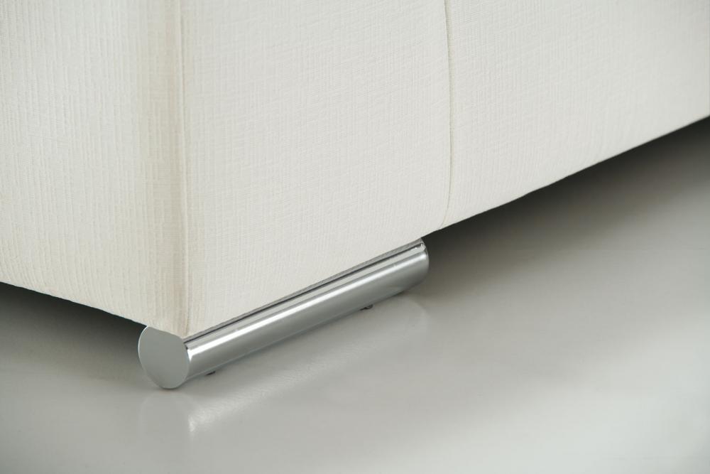 Pfeffersofa mit Bezug aus Kunstleder oder abnehmbarem Stoff mit Holzgestell, Schaumstoffpolsterung und Füßen aus poliertem, verchromtem Stahlrohr H 44 mm. Das Sofa ist mit einer technologischen Ecke ausgestattet, die aus einem eingebauten Stereodiffusionssystem und einer Dockingstation besteht, an der die Anschlussbasis für ein iPhone, einen iPod oder ein anderes Gerät vorbereitet ist, das über Bluetooth oder einen USB-Anschluss angeschlossen werden kann.
