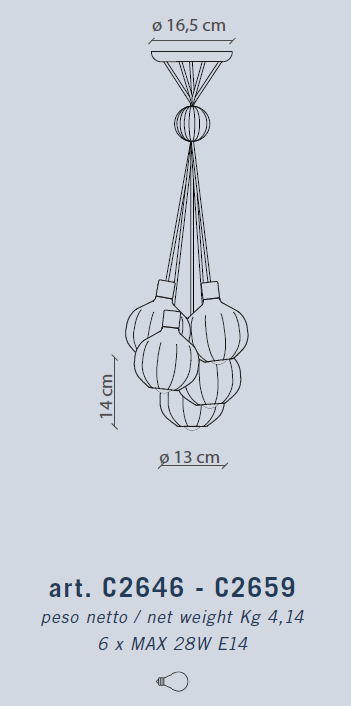 GRAPPOLO SUSPENSION 6 LICHTER - weiche Mischung DECO' AFOXE' C2656 von Ferroluce