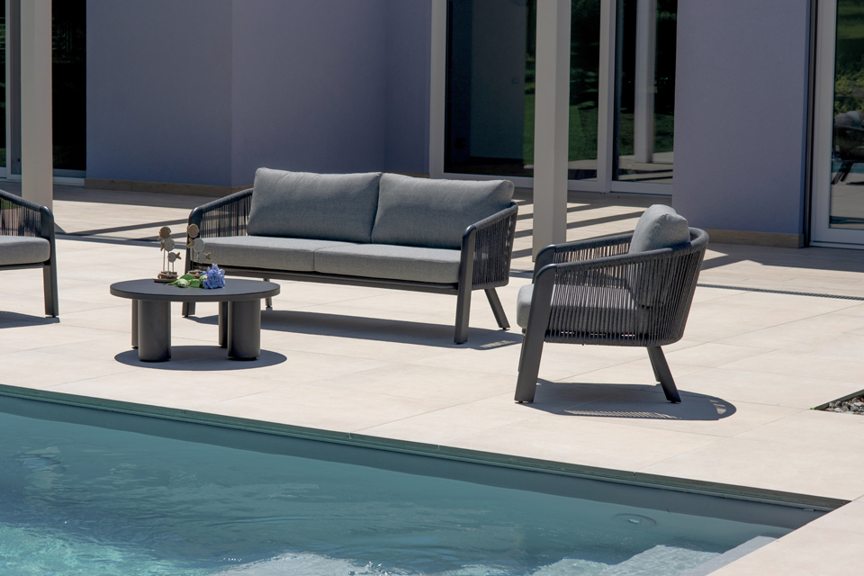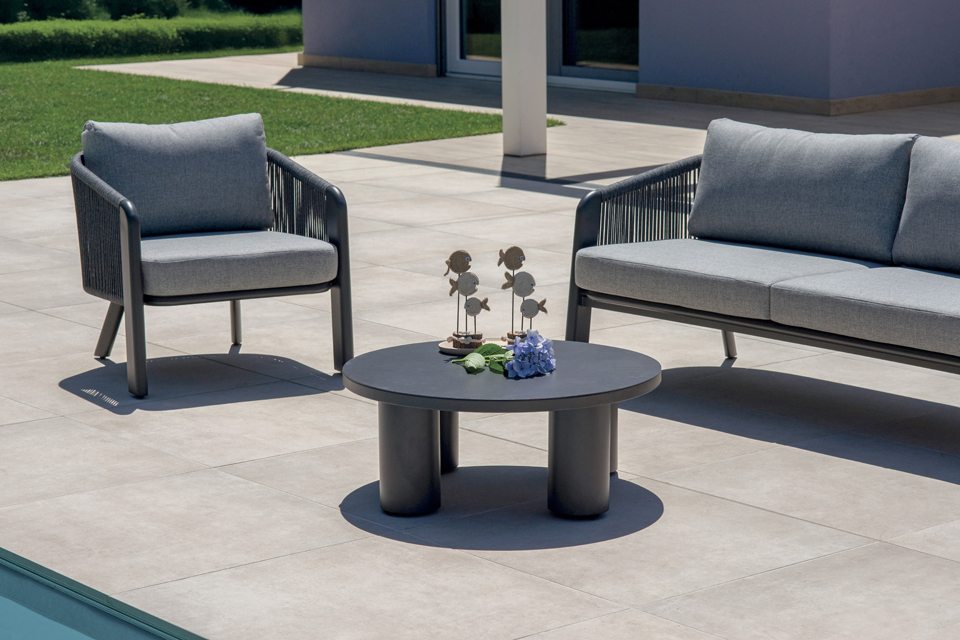 Dieses Wohnzimmer eignet sich ideal für Terrassen, Gärten und Veranden und schafft eine einladende und elegante Ecke, in der Sie sich entspannen oder Gäste empfangen können – in vollem Komfort und mit modernem Design.