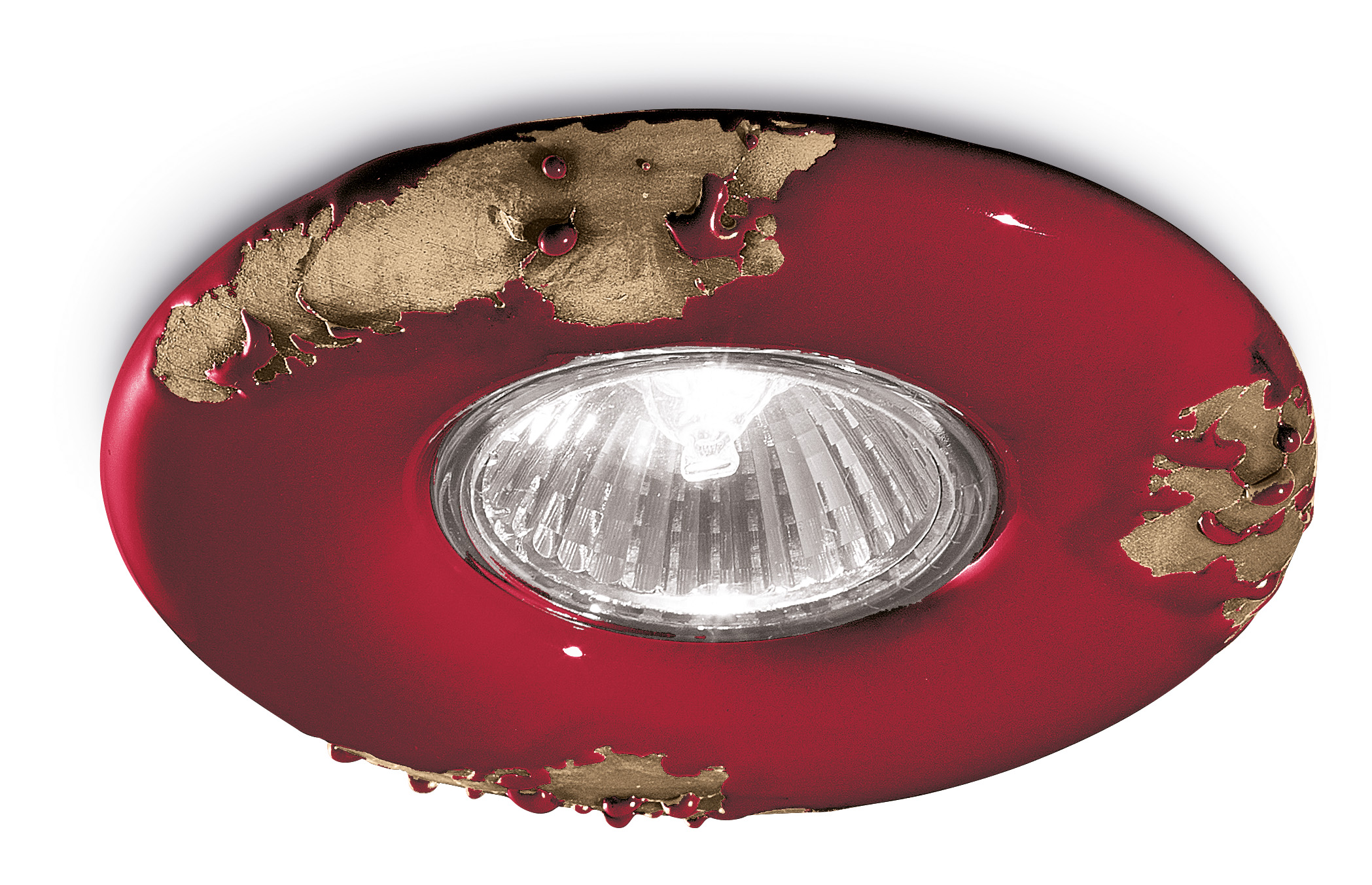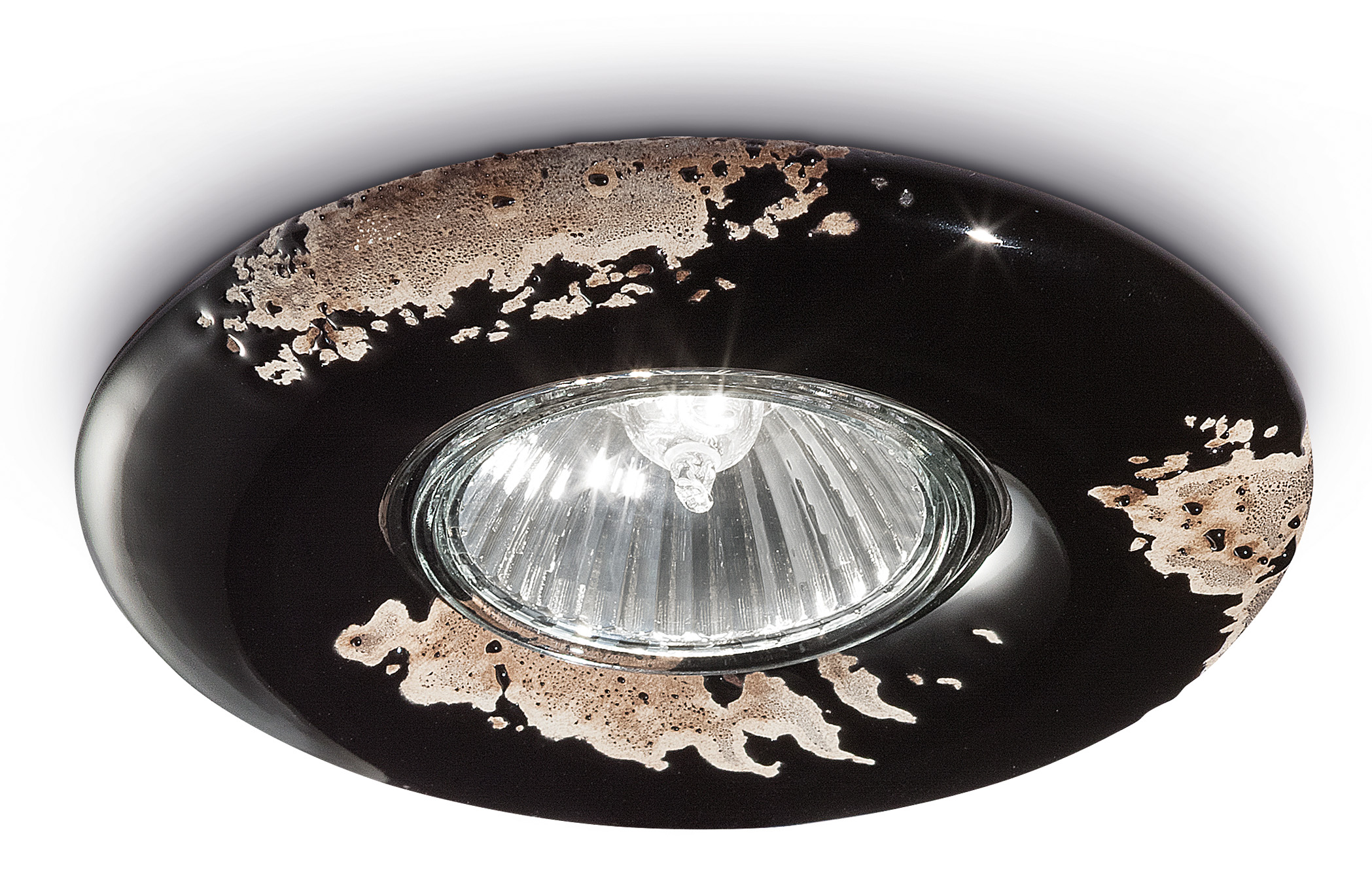 Einbaustrahler, der sich durch glänzende und abgenutzte Farben auszeichnet. Die dezenten Formen des Gehäuses betonen den Lichtpunkt mit einem traditionellen Design.