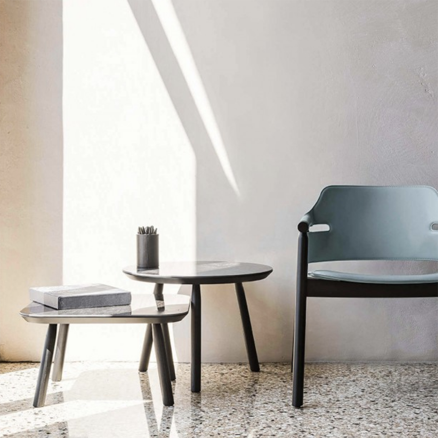 Alternativ sind die Suite Couchtische in jeder Höhenvariante auch in der runden Version mit drei Beinen Ø55 erhältlich.