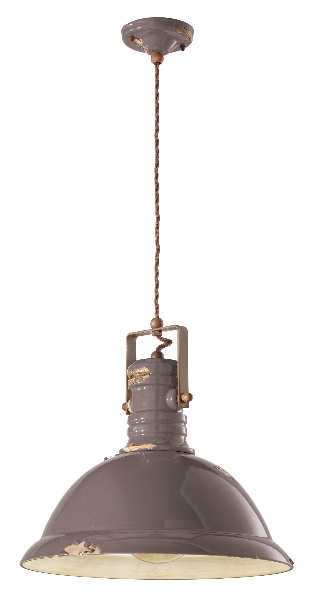Hängeleuchte d.40 RETRO' INDUSTRIAL C1690 von Ferroluce. Keramiklampe mit Metallteilen aus antikem Corteneisen und ummanteltem Baumwollkabel.