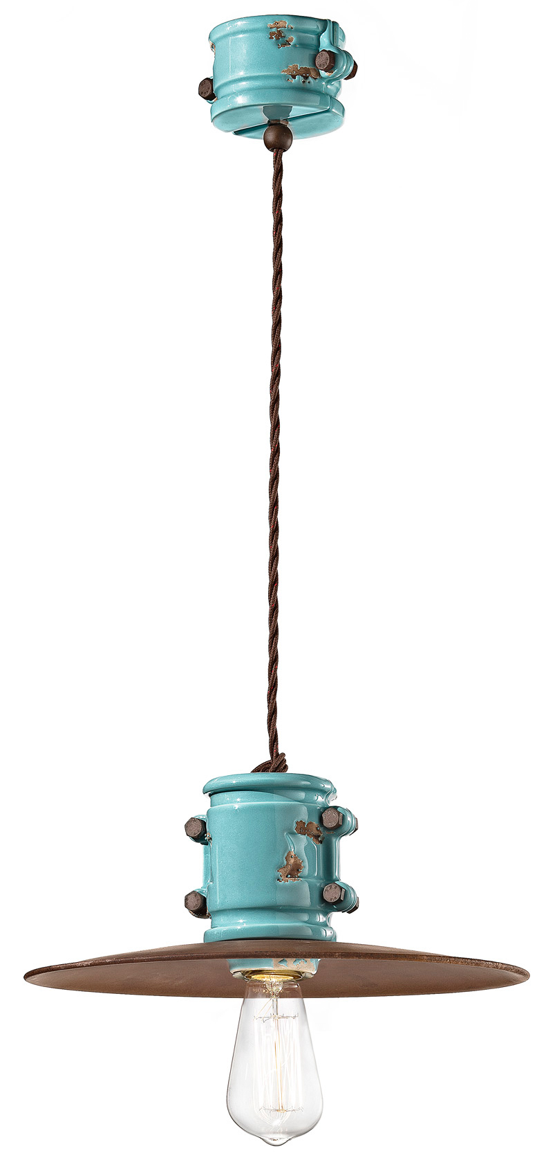 Hängeleuchte d.40 RETRO' URBAN C1522 von Ferroluce. Lampe aus Keramik und Metall mit ummanteltem Stoffkabel.