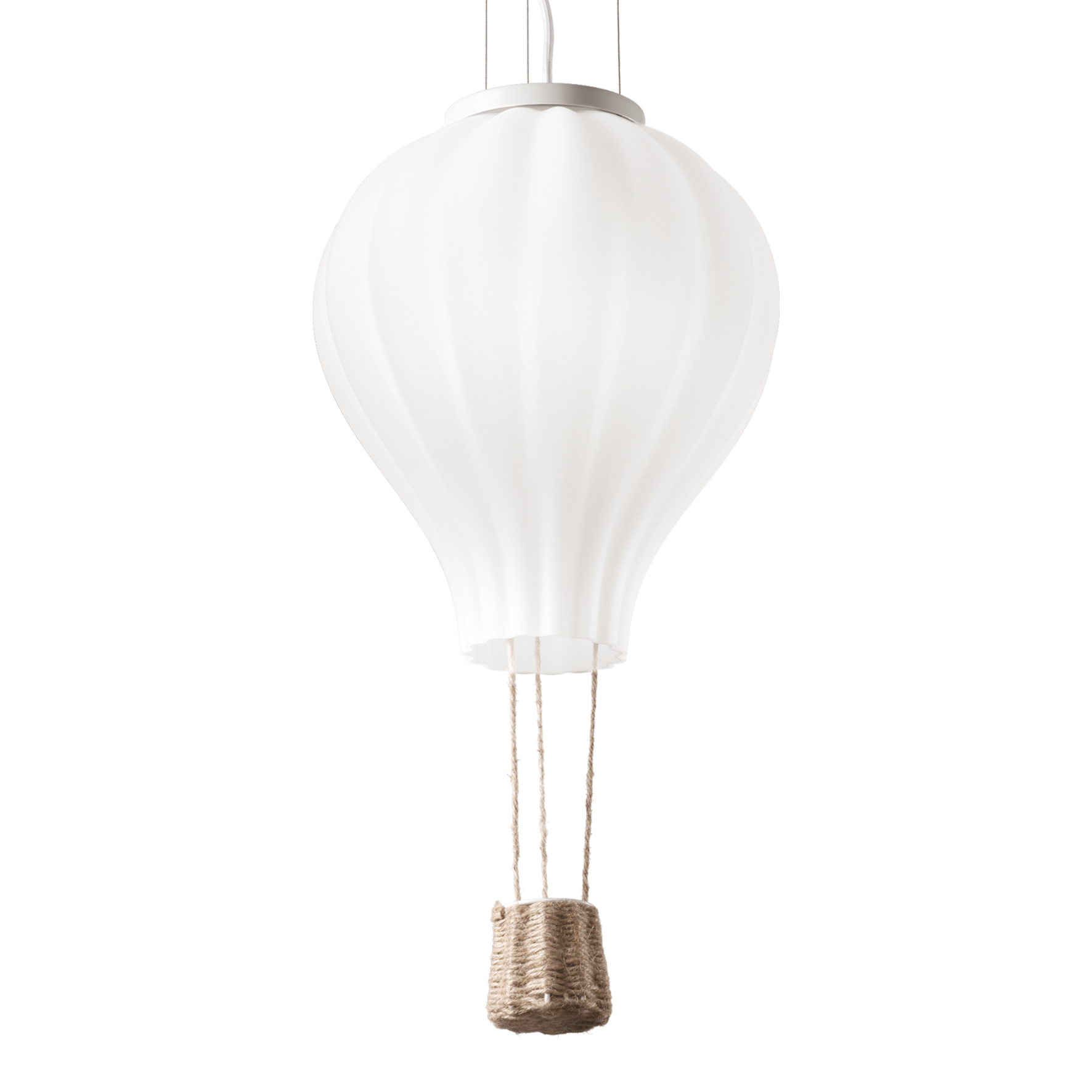 Hängeleuchter DREAM BIG SP1 D42 von Ideal Lux mit mattweiß lackierter Metallrosette. Stoffkabel. Diffusor aus geätztem weißem geblasenem Glas. Seilkorb. Glühbirne ausgeschlossen.