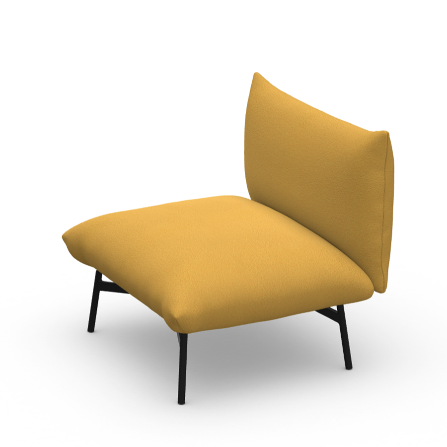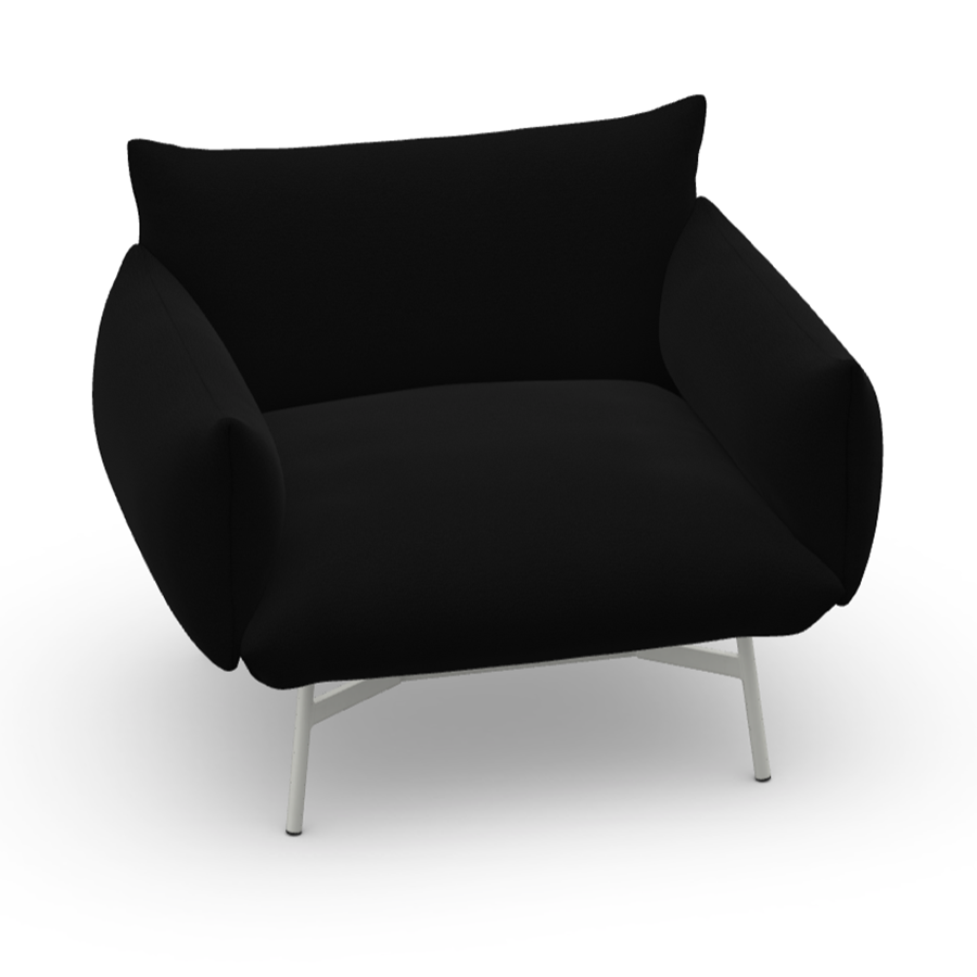 Sessel mit vierbeinigem Untergestell aus lackiertem Metall. Sitz und Rückenlehne mit Stoff bezogen. Der Area-Sessel ist auch in der Version mit Armlehnen erhältlich.