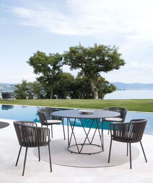 Eine Kollektion mit modernem Flair, in der das Zusammenspiel geometrischer Grundformen und klarer Linien eine dynamische und funktionale Atmosphäre schafft. Der Wohnraum im Freien wird so zu einem fließenden, mitunter traumhaften Raum, der sich harmonisch in jede Umgebung einfügt.