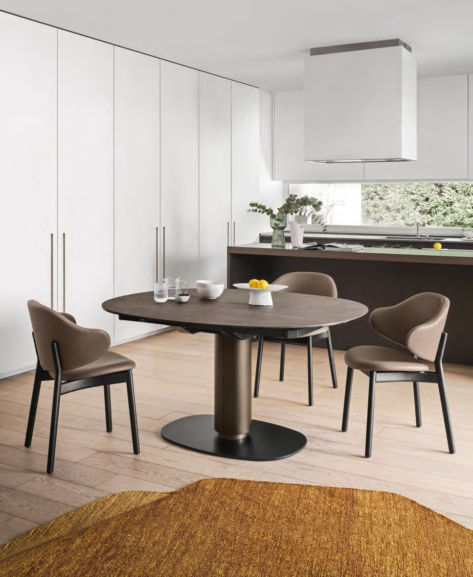 Die Struktur zeichnet sich durch weiche Abschnitte aus, die perfekt zum einladenden Charakter der gepolsterten Schalen passen und deren Weichheit und die Einladung zum Sitzen betonen.