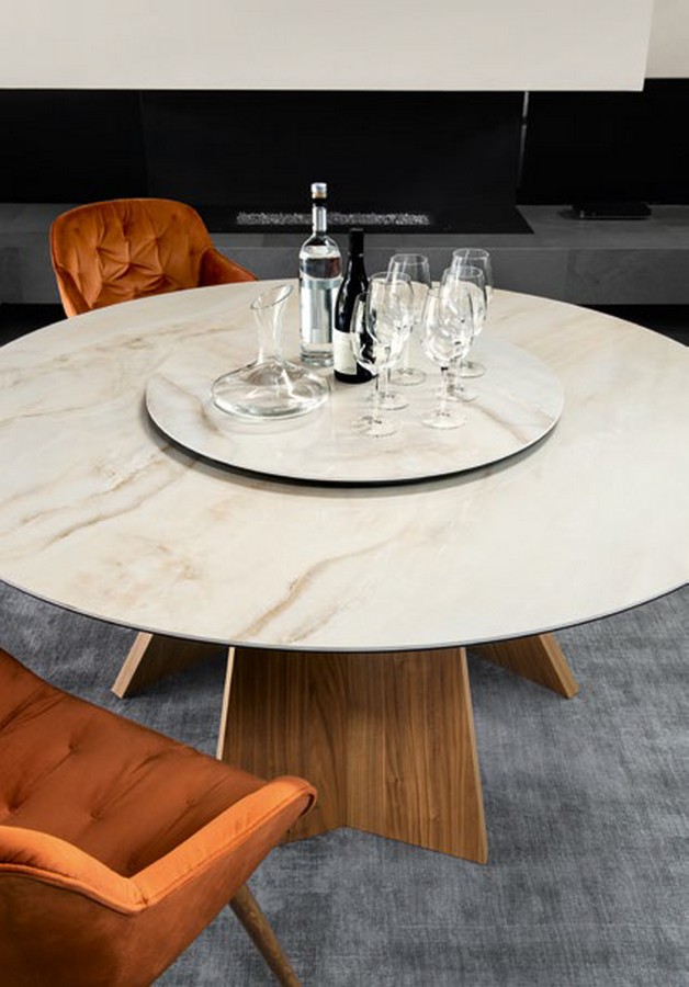 Die Flügel des Ikarus erwachen in Ihrem Essbereich zum Leben und bilden die Basis dieses neuen festen runden Tisches, der besonders elegant und gleichzeitig funktional ist.