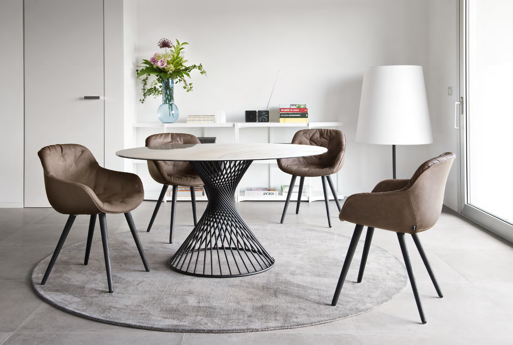 Halb Stuhl, halb Sessel, geeignet für jede Dimension der Geselligkeit: IGLOO zeichnet sich durch eine weiche und umhüllende Schale aus.