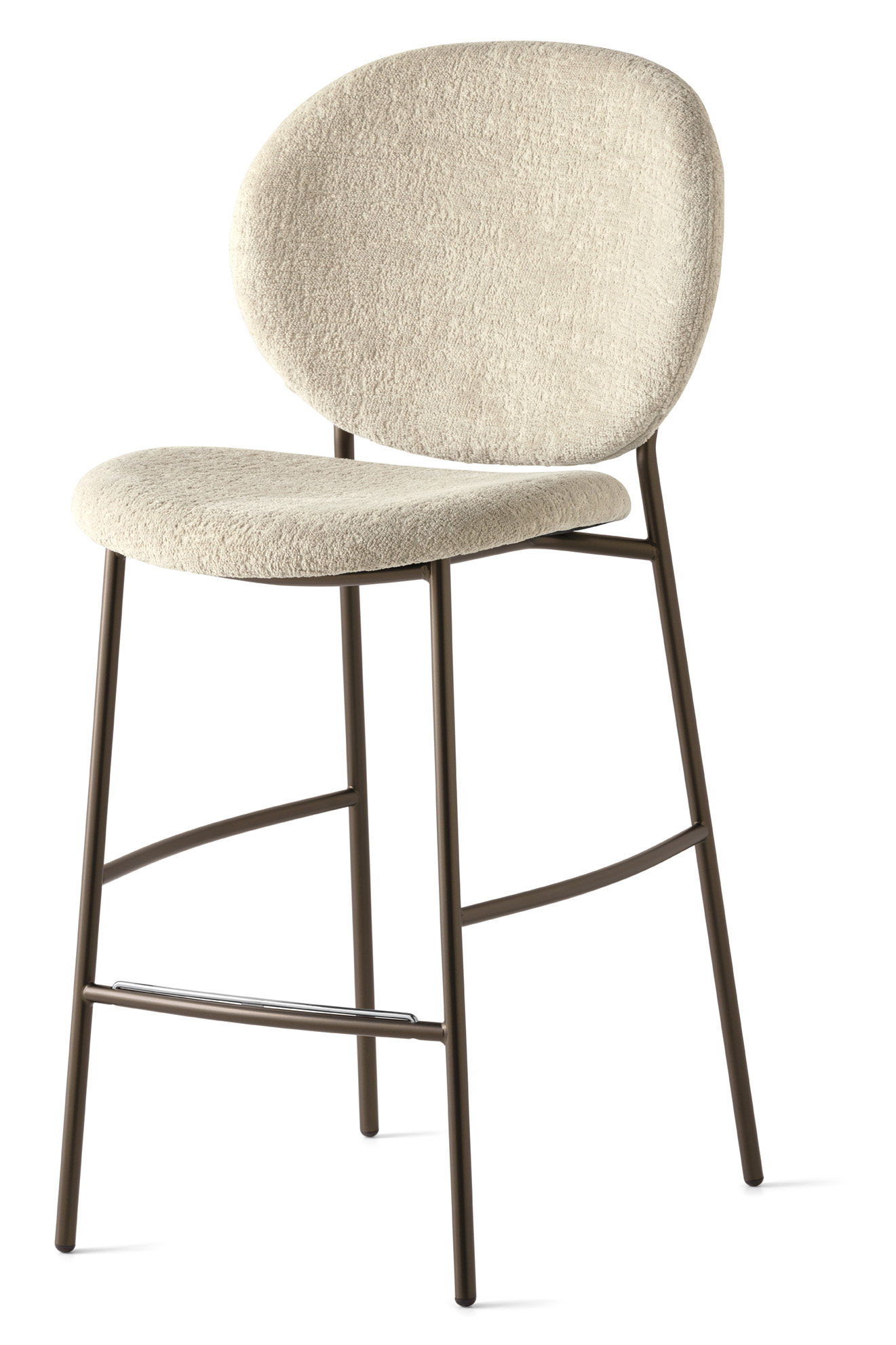 Eine Neuinterpretation des 50er-Jahre-Sitzmöbelstils mit weichen und anmutigen Formen. Der Hocker mit Metallstruktur stützt Sitz und Rückenlehne elegant und leicht und zeichnet sich durch eine abgerundete und einladende Silhouette aus. Bequem und elegant – INES ist ideal für alle, die die Schlichtheit und den Charme klassischer Materialien lieben.