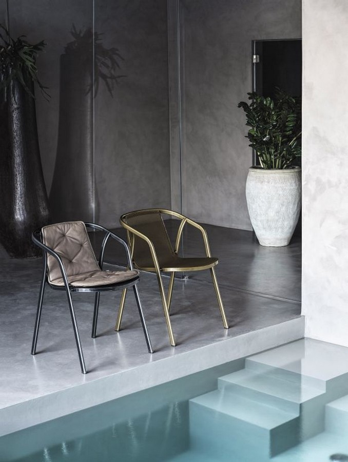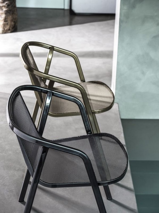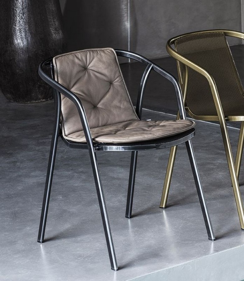 Ines Stuhl von Bontempi mit Struktur und Sitz komplett aus lackiertem Stahl. Erhältlich in zwei Versionen: eine für den internen Gebrauch und eine für den externen Gebrauch. Mit einer schlichten Linie und einem Netzsitz und einer Rückenlehne kann dieser umhüllende Sitz durch das praktische optionale Kissen, das in allen Stoffen für den Innenbereich oder in Stoffen für den Außenbereich erhältlich ist, noch komfortabler gestaltet werden.