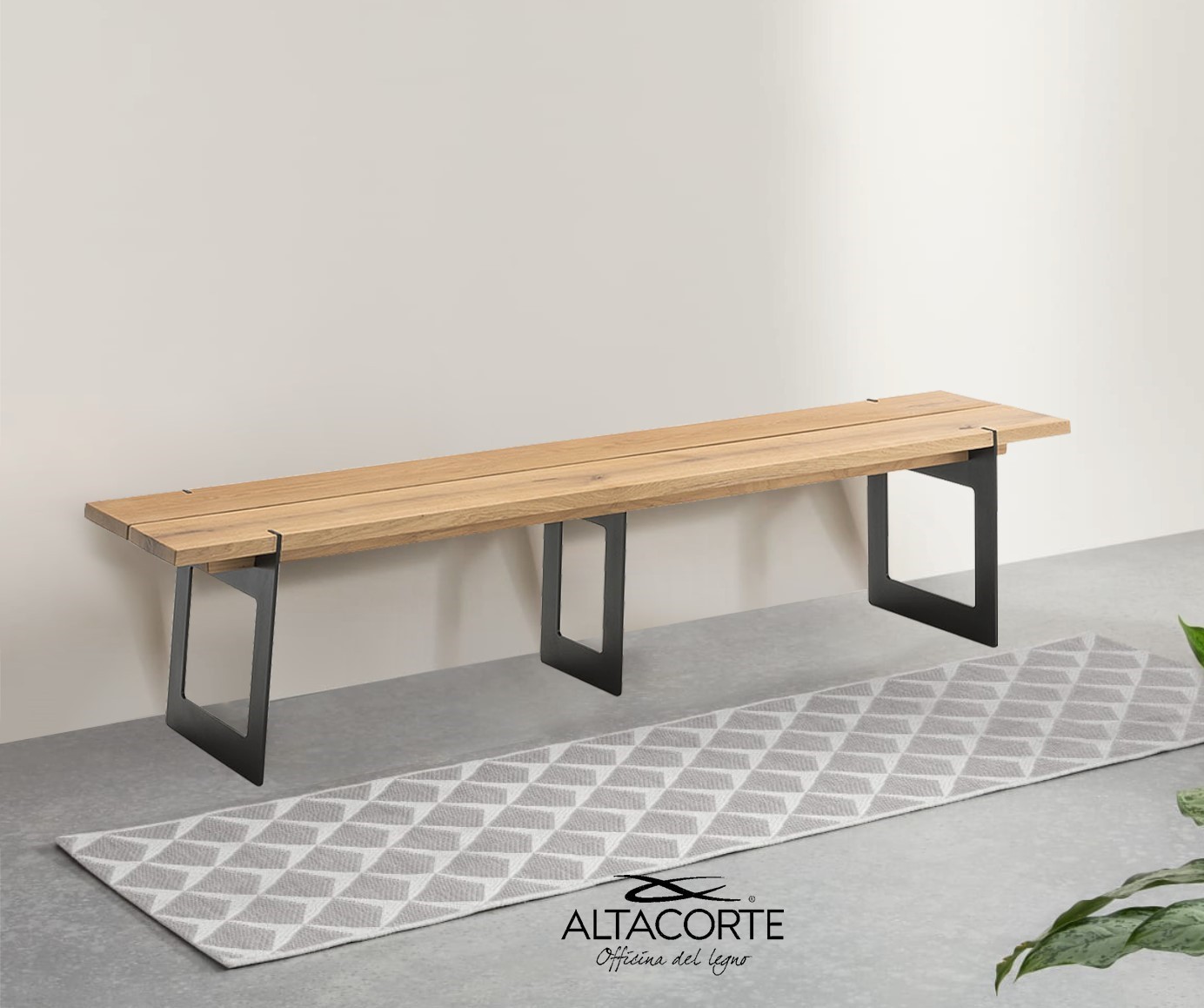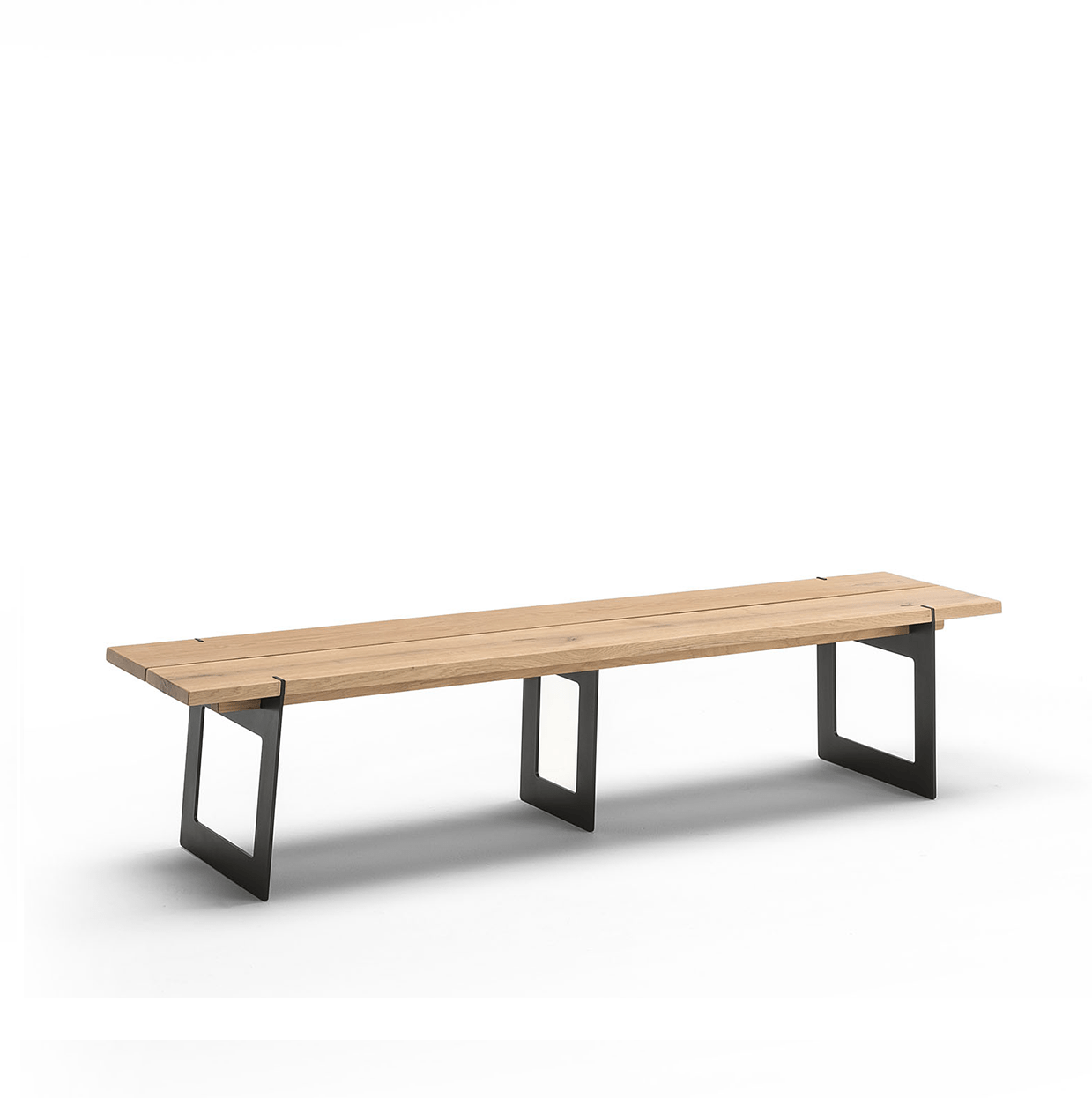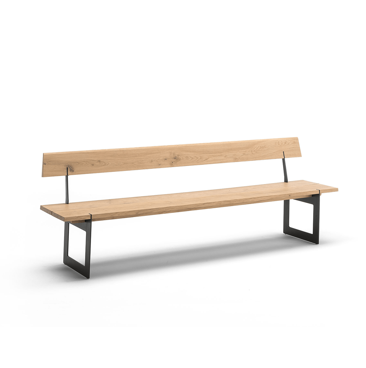 Iron bank von Altacorte, erhältlich mit oder ohne Rückenlehne, gekennzeichnet durch Metallbeine, Sitz aus massiver Eiche oder Nussbaum