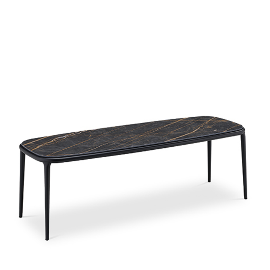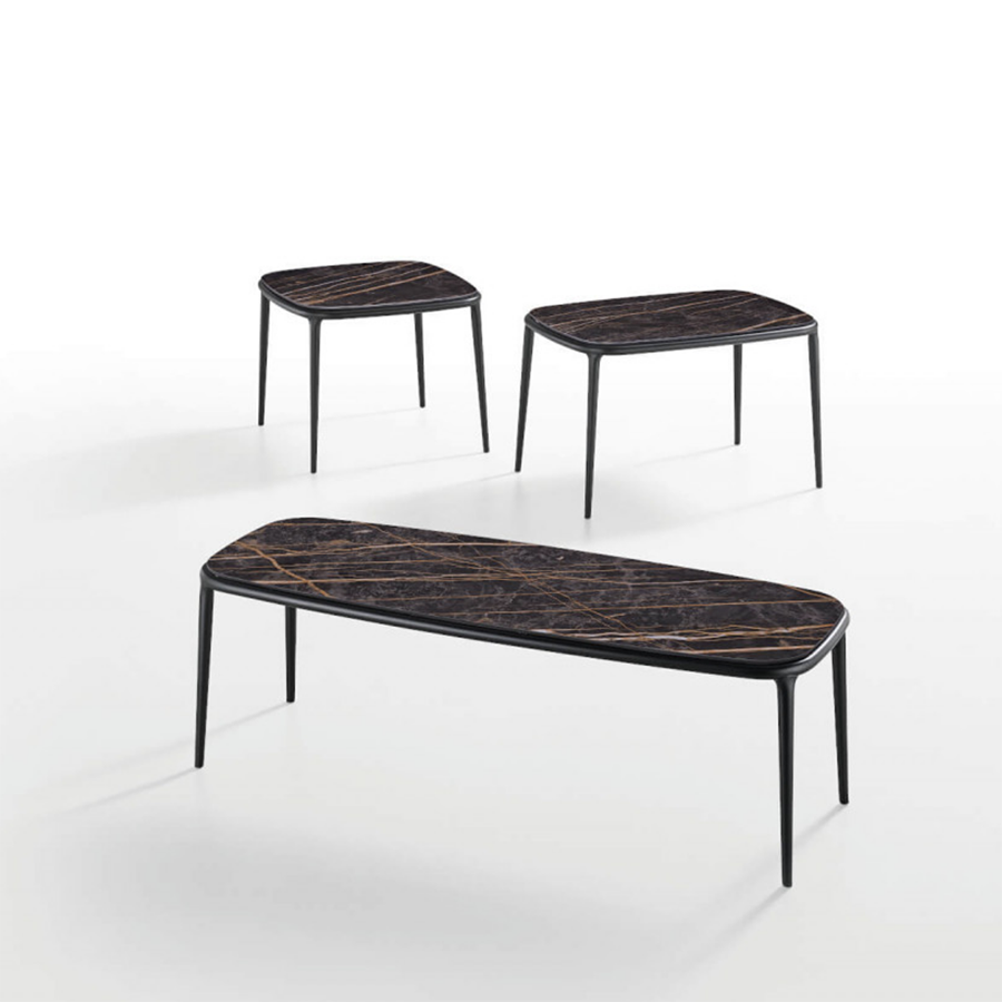 Couchtisch Lea mit vierbeinigem Gestell aus lackiertem Metall. Furnierte oder Keramikplatte.