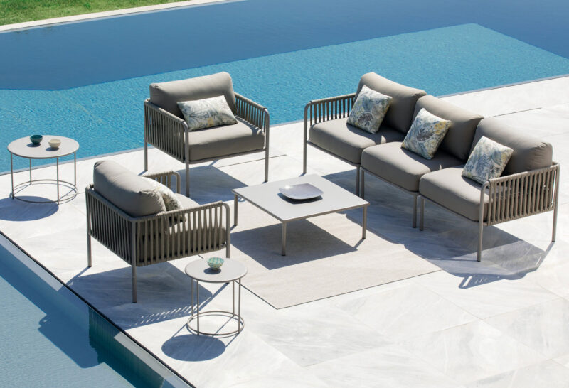 Das elegante und funktionale Dreisitzer-Sofa Key West ist in zahlreichen Ausführungen erhältlich: Sie können beispielsweise die Farbe des Metallrahmens, des Seils und der Kissen auswählen.