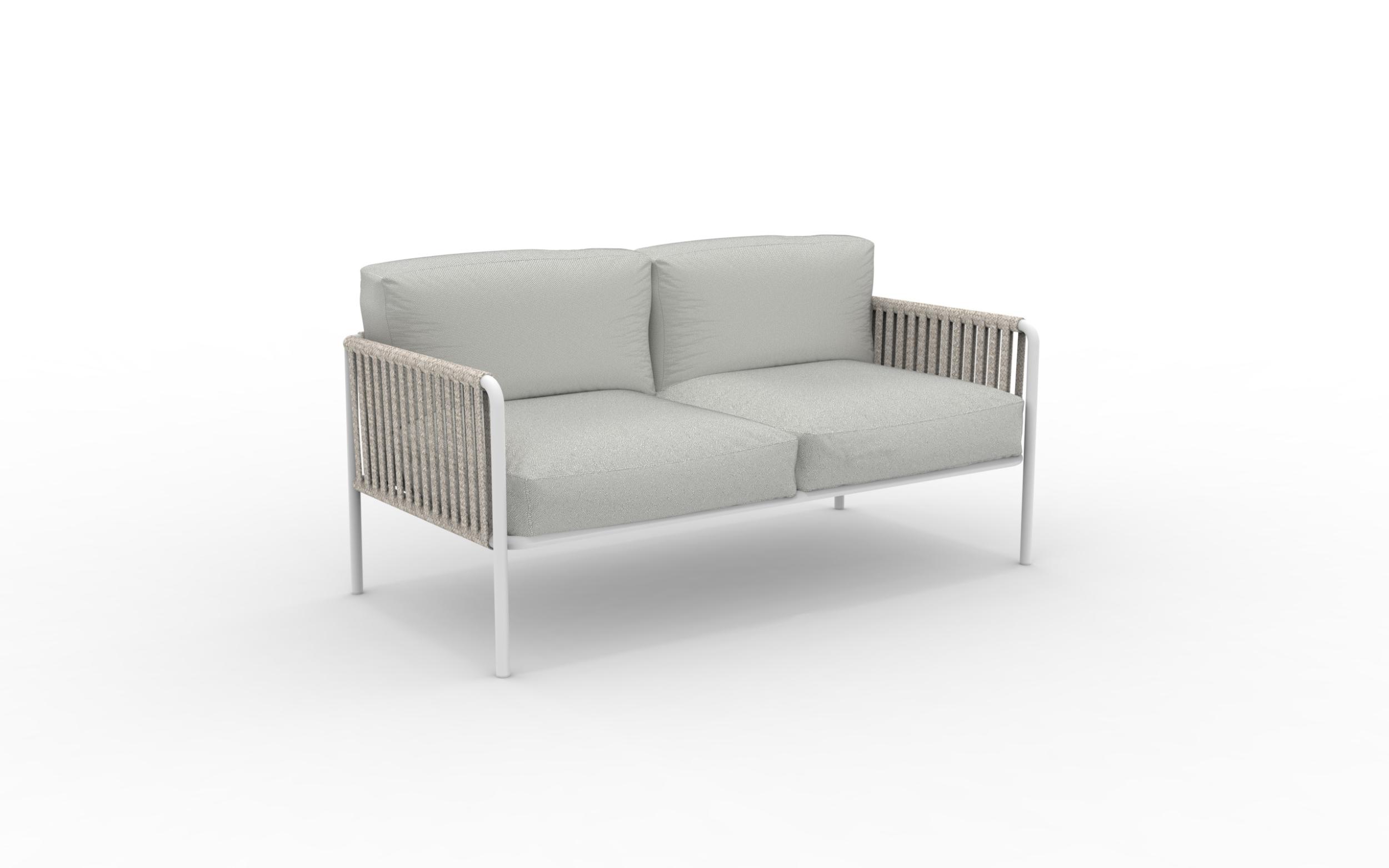 Das elegante und funktionale Zweisitzer-Sofa Key West ist in zahlreichen Ausführungen erhältlich: Sie können beispielsweise die Farbe des Metallrahmens, des Seils und der Kissen auswählen.