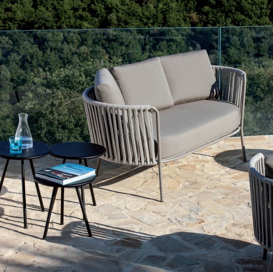 Die Daisy-Kollektion von Vermobil bietet Bausätze mit drei minimalistischen, niedrigen und runden Tischen aus verzinktem Stahl. Diese Tische sind für den Außenbereich geeignet und in verschiedenen Ausführungen und Höhen erhältlich, jedoch in allen drei Ausführungen in der gleichen Farbe. Sie können die Komposition des Wohnzimmers dieser Linie vervollständigen.
