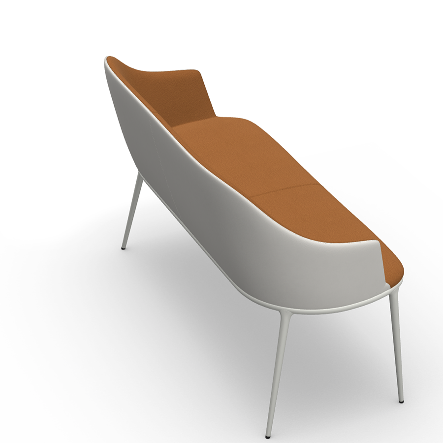 Lea Zweisitzer-Sofa. Vierbeiniges Gestell aus Stahl, Sitz und Rücken mit Stoff, Kunstleder oder Leder bezogen. Sitz und Rücken können in verschiedenen Farben und Materialien hergestellt werden.