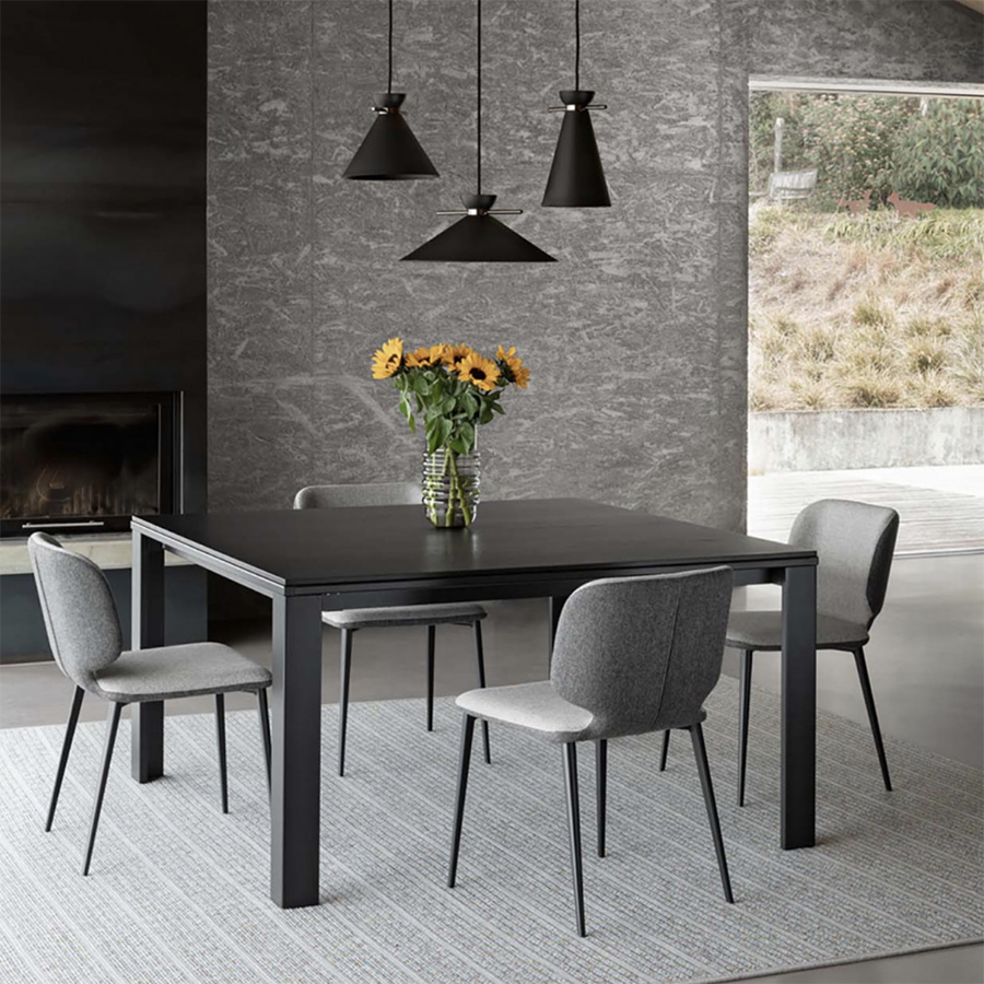 Marcopolo, quadratischer ausziehbarer Tisch mit lackierter Metallstruktur.