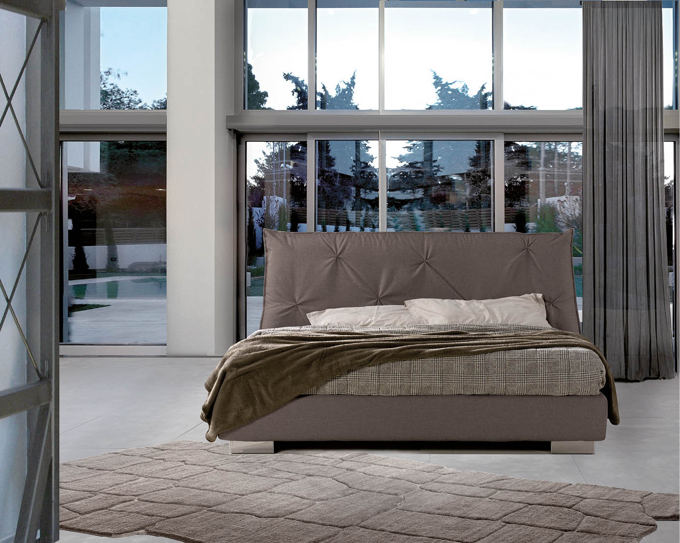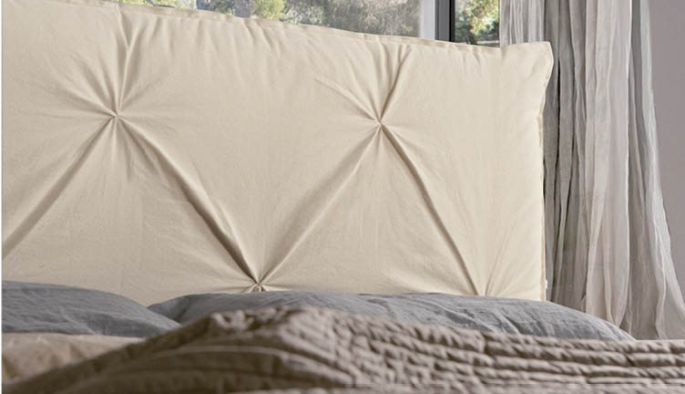 Ein hervorragendes Beispiel für die Verschmelzung von Einrichtung und Mode. Das wichtige Kopfteil wird durch das wertvolle, sichtbare Schnitt- und Nähmodell noch mehr hervorgehoben.