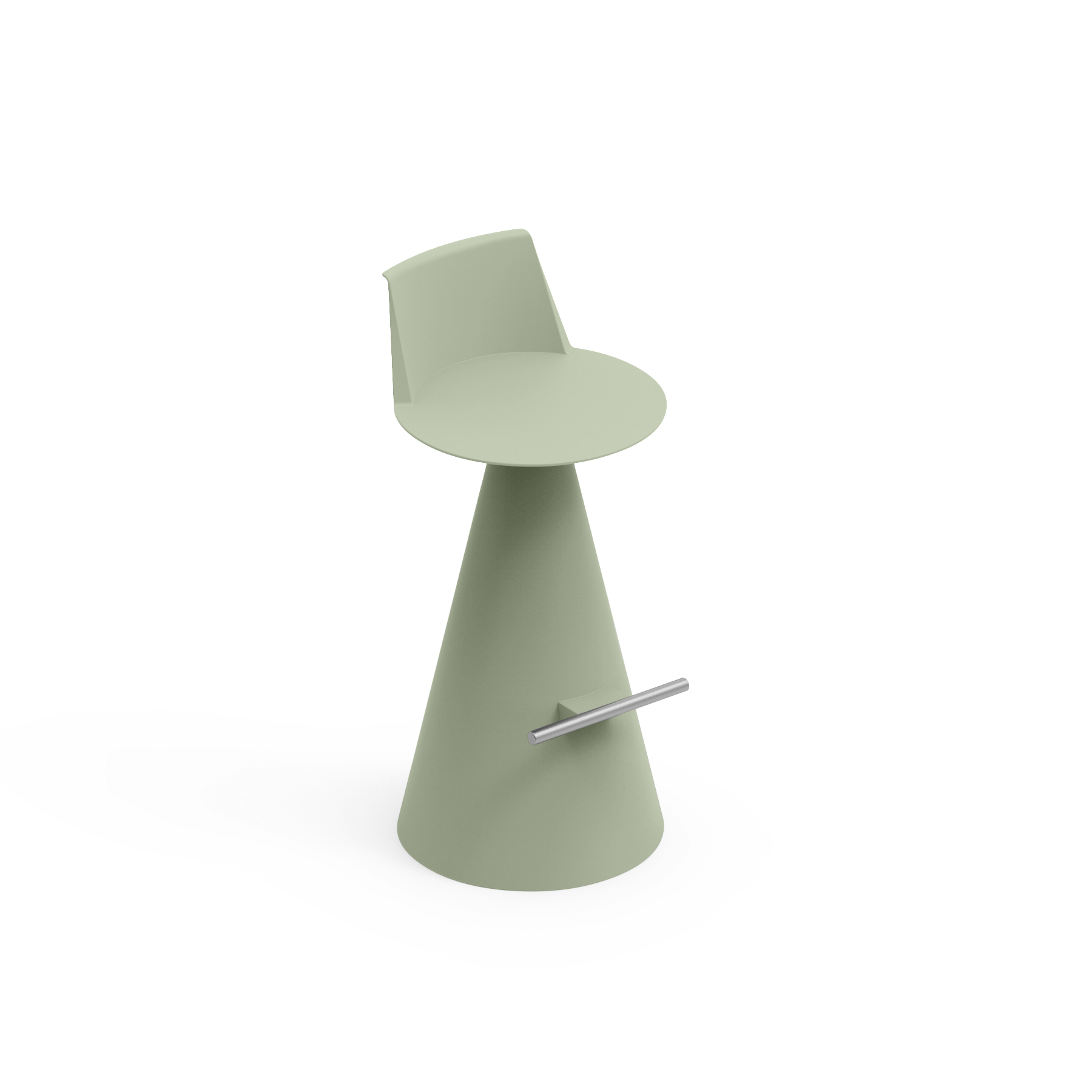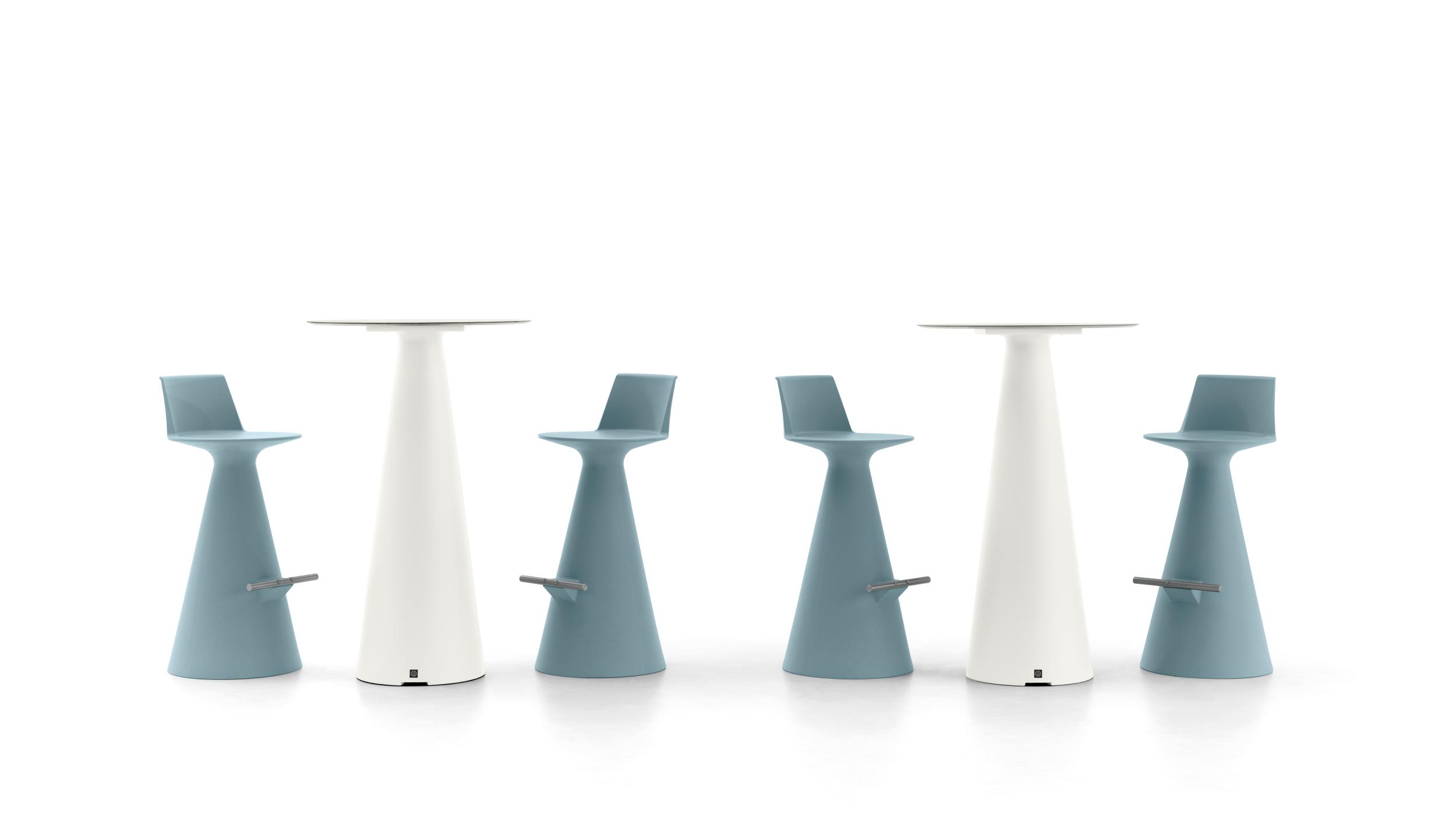 Hocker aus Polyethylen mit Fußstütze aus verzinktem Stahl.
