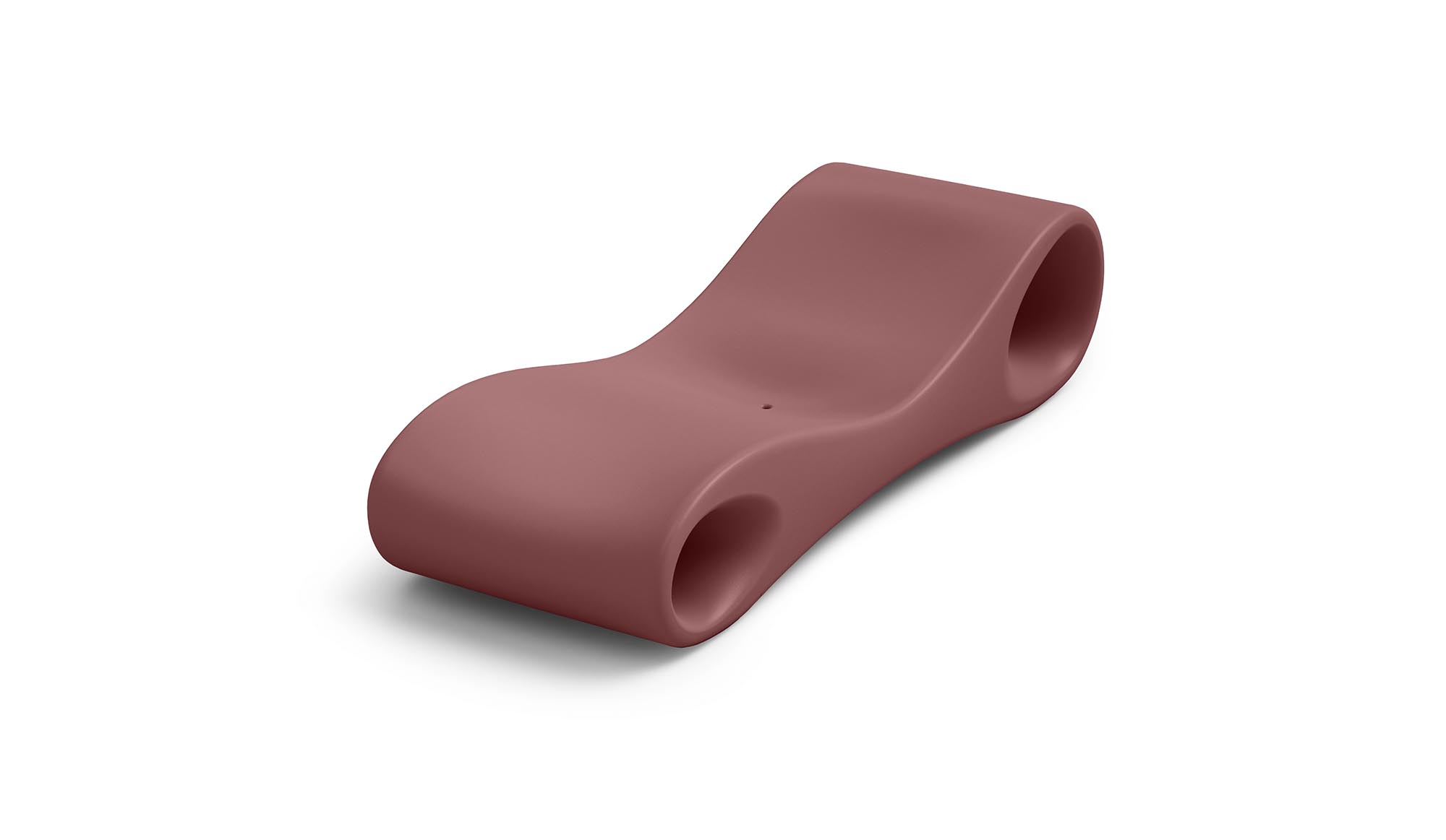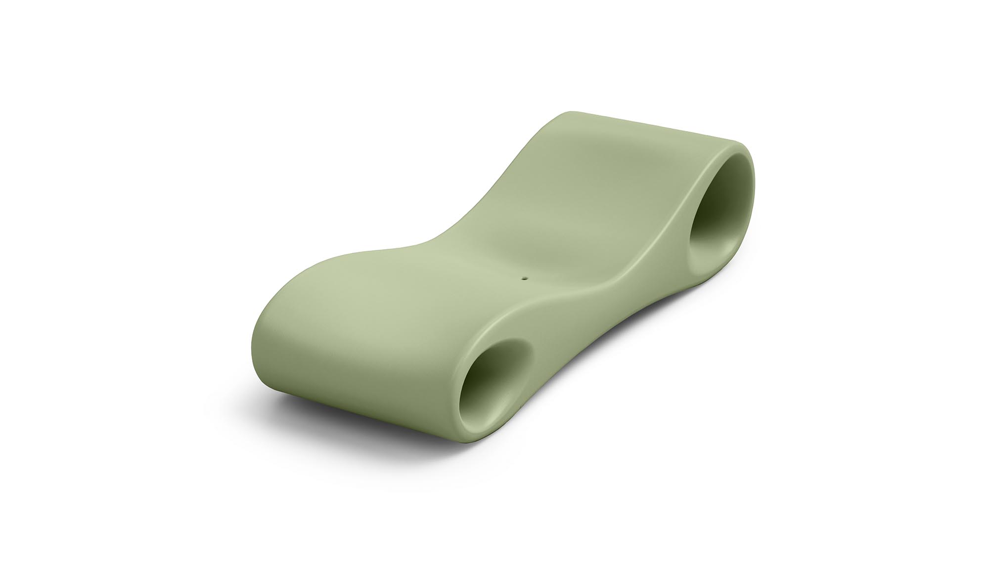 Die Form wurde für größtmöglichen Komfort konzipiert, ohne praktische Details zu vernachlässigen, wie beispielsweise das Loch für den Wasserablauf und die beiden Öffnungen, die bei Bedarf zu praktischen Ablageflächen werden können. Slice besteht aus Polyethylen, ist leicht zu waschen und wetterbeständig.
