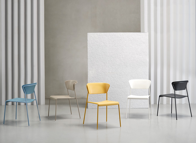 Ihre Eleganz ist stets ein Blickfang. In dieser Ausführung verfügt Lisa über eine Sitzfläche und Rückenlehne aus Technopolymer. Weiche Formen vermitteln ein angenehmes Gefühl von Wertigkeit und Solidität, die Haptik der Oberflächenveredelung und die Auswahl moderner Farben machen Stuhl und Hocker zu einem festen Bestandteil stilvoller Objekträume.