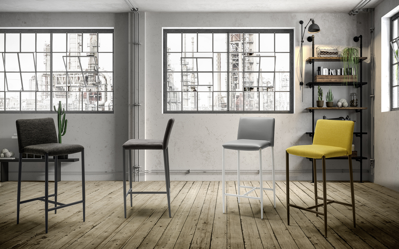 Memphis-Hocker von Zamagna mit Metallstruktur und Sperrholzsitz mit Bezug aus verschiedenen Materialien und Ausführungen. Ein einfacher Hocker, aber mit einem besonderen Design, das ihn von der Masse abhebt. Bequem und elegant, eignet es sich perfekt zur Dekoration Ihrer Räume.