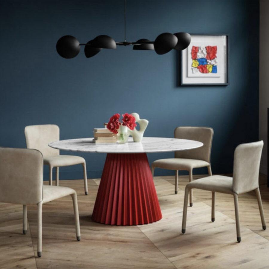 Aus der Zusammenarbeit mit Paola Navone stammt Plissé , eine Tischkollektion mit skulpturaler und eleganter Präsenz, aber auch leicht und informell. Auf etwas ironische Weise huldigt Plissé der Modewelt und der ikonischen Plissee-Verarbeitung, die in den 50er und 60er Jahren so beliebt war und bis heute in Mode ist.