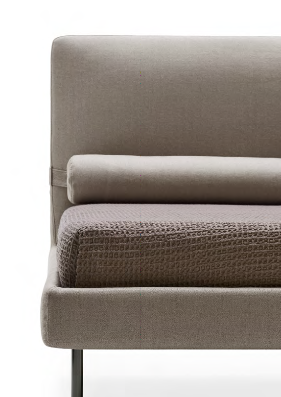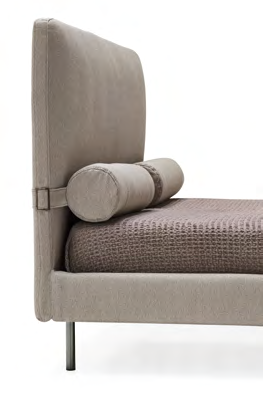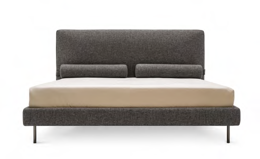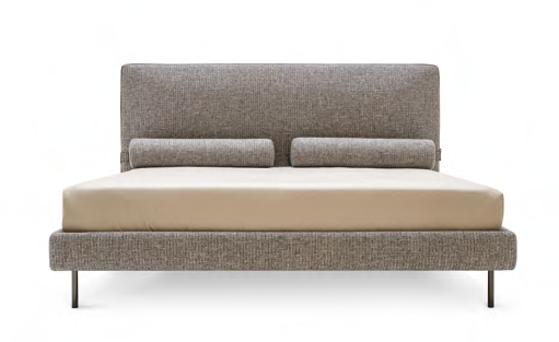 Dieses vom gleichnamigen Sofa inspirierte Bett zeichnet sich durch einige herausragende ästhetische Aspekte aus. Rollen, die praktisch mit einem Magneten am Kopfteil verankert sind und bei Bedarf abgenommen werden können. Kopfteil mit umlaufendem Band, das mit einem anderen Material oder einer anderen Ausführung kontrastieren kann. Dünne und zylindrische Füße, die den Bettrahmen stützen. Dieses vollständig abnehmbare Bett kann aus Stoff oder Leder gefertigt werden.