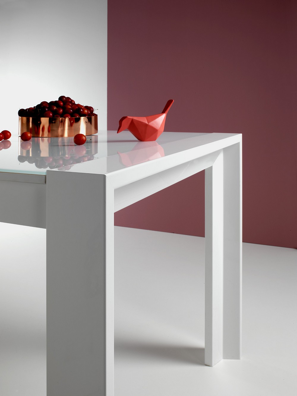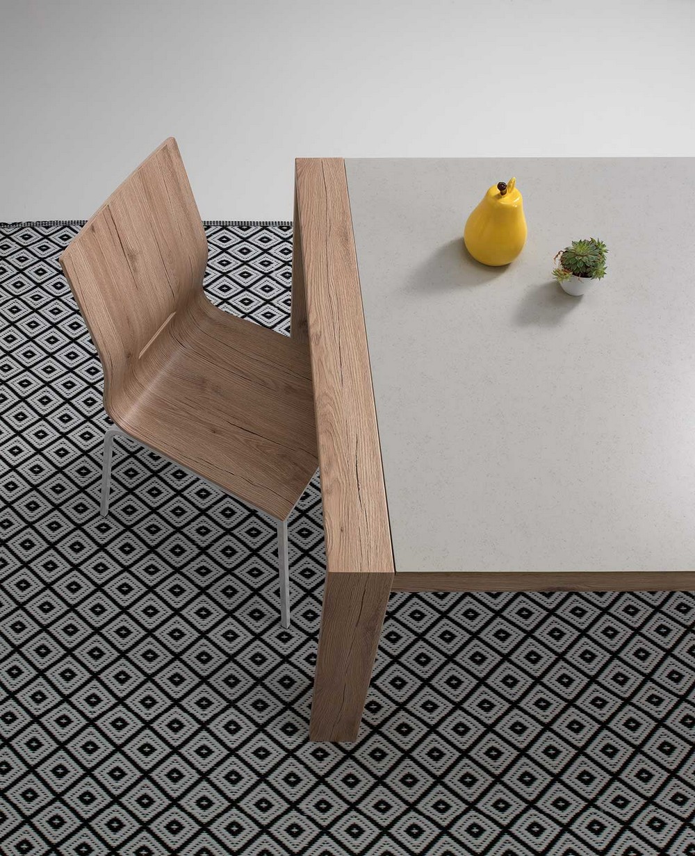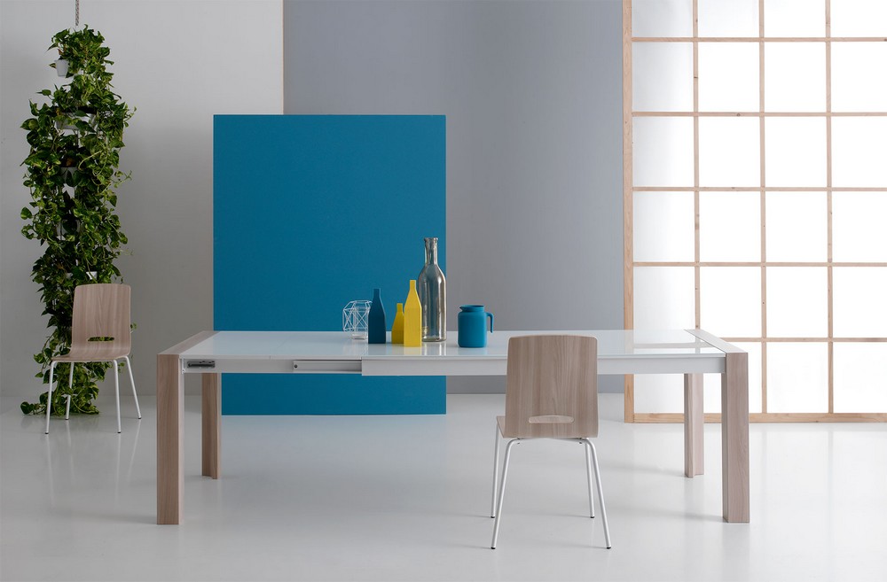 Milano von Point House ist ein Tisch mit zwei 40 cm langen Einlegeplatten (oder drei in der LONG-Version) und einem umlaufenden Öffnungsmechanismus auf Aluminiumschienen. Das Metallgestell ist epoxidpulverbeschichtet oder mit Holzeffekt furniert. Das besondere Merkmal des Milano-Tisches sind seine Beine, die aus Melamin oder beschichtetem MDF bestehen können und mit einem patentierten, einziehbaren „Click Clak“-Rollensystem ausgestattet sind, das das Öffnen des Tisches erleichtert. Die Melaminplatte ist 18 mm dick.