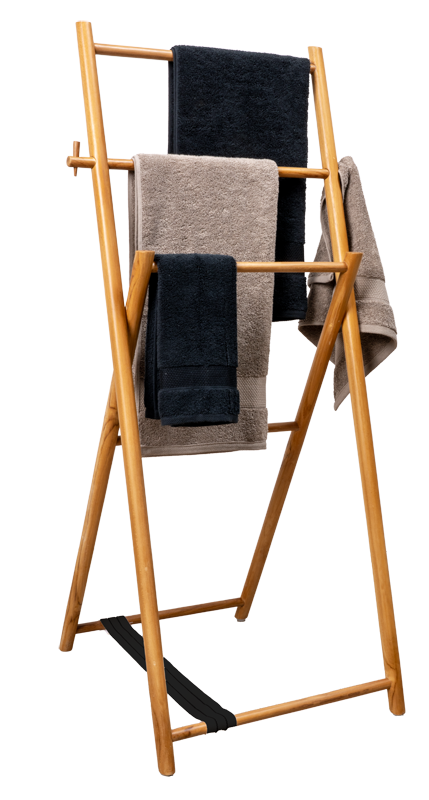 Komplett aus gebürstetem Teakholz gefertigt, ist Milord mehr als ein Handtuchständer! Er ist höher als der Standard und ermöglicht das ordentliche Aufhängen von bis zu 6 Handtüchern oder Waschlappen. An den praktischen Seitenhaken können zwei gebrauchsfertige Handtücher untergebracht werden.