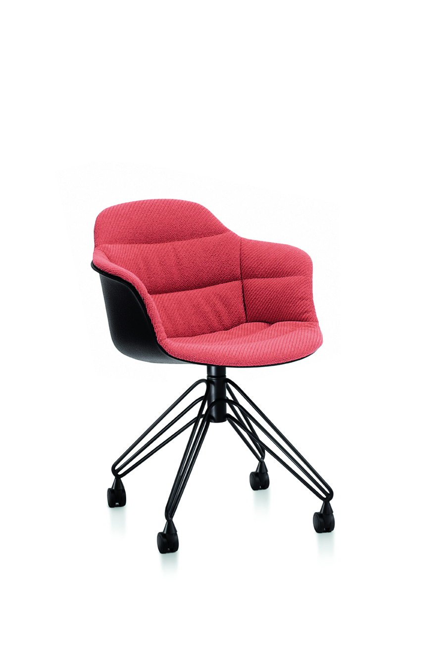 Stimmung 34.22R (Drehstuhl mit Rollen, Stahlrahmen mit Armlehnen, gepolsterte Schale und Bezug auf der Vorderseite) cm: L.61xT.57xH.83/48 x H.Armlehnen 71