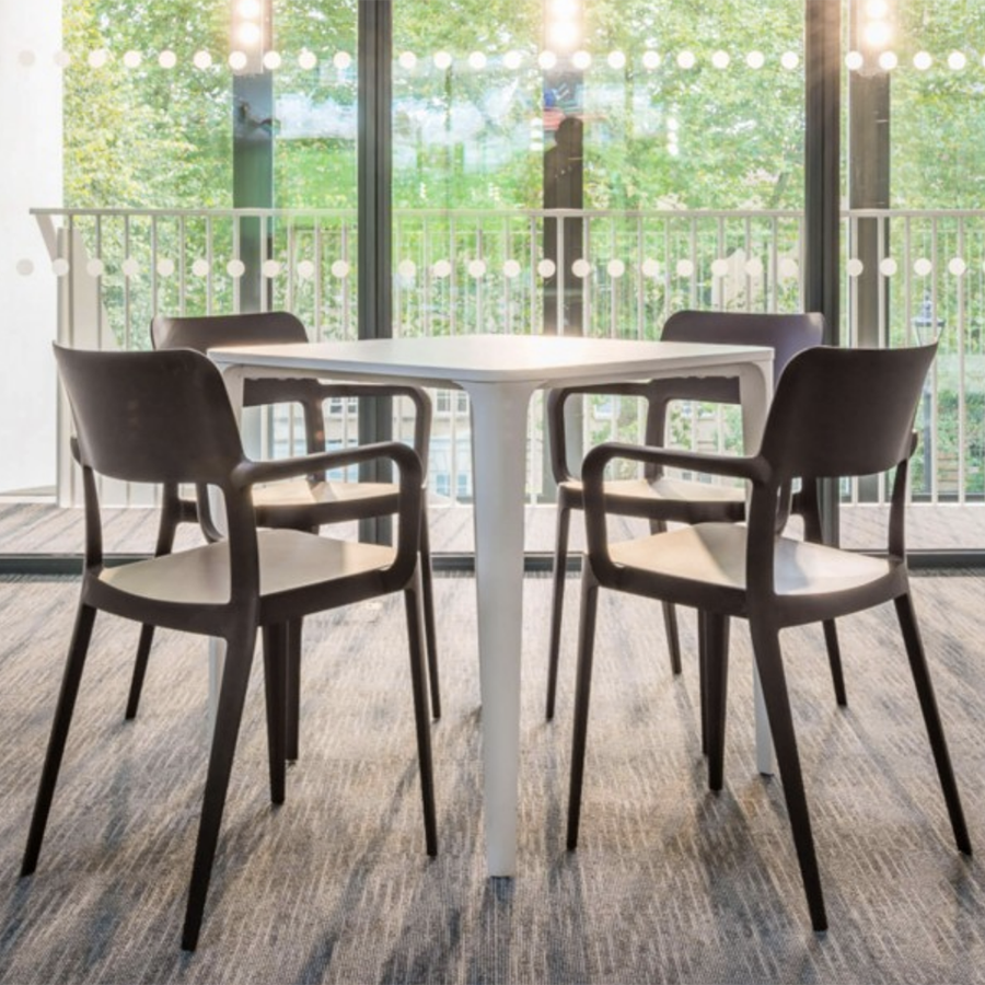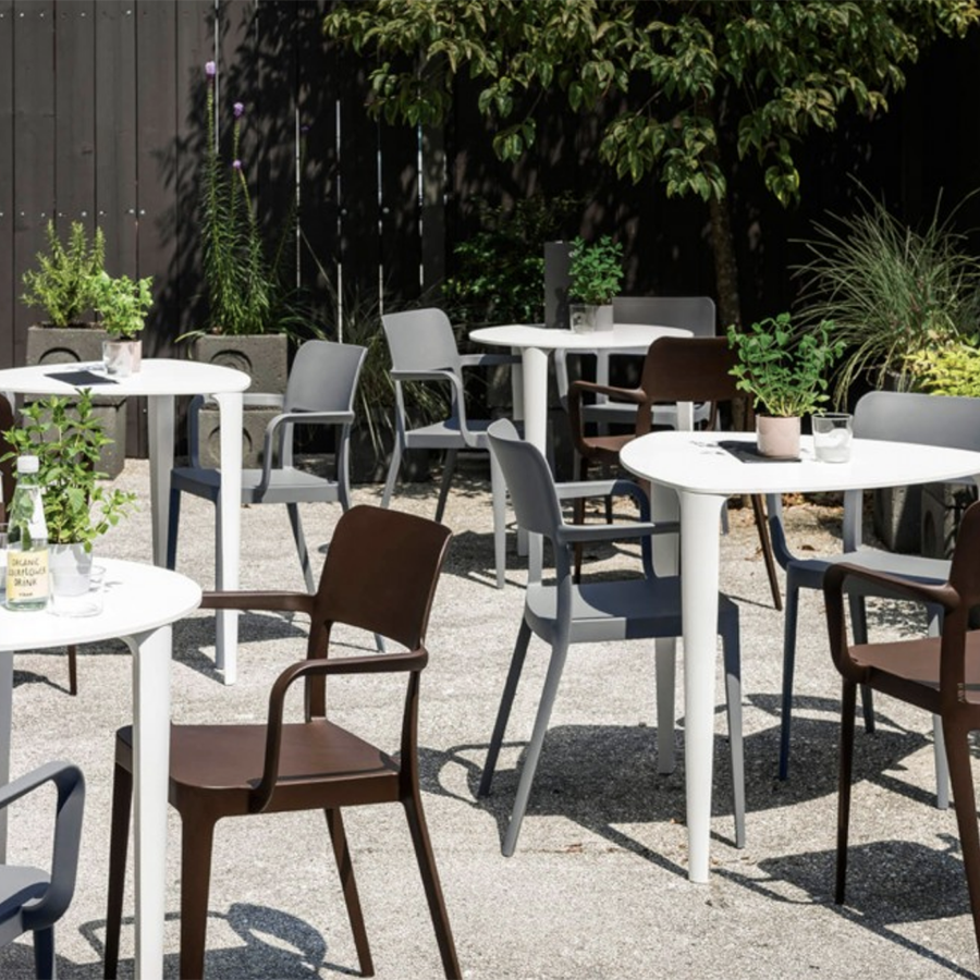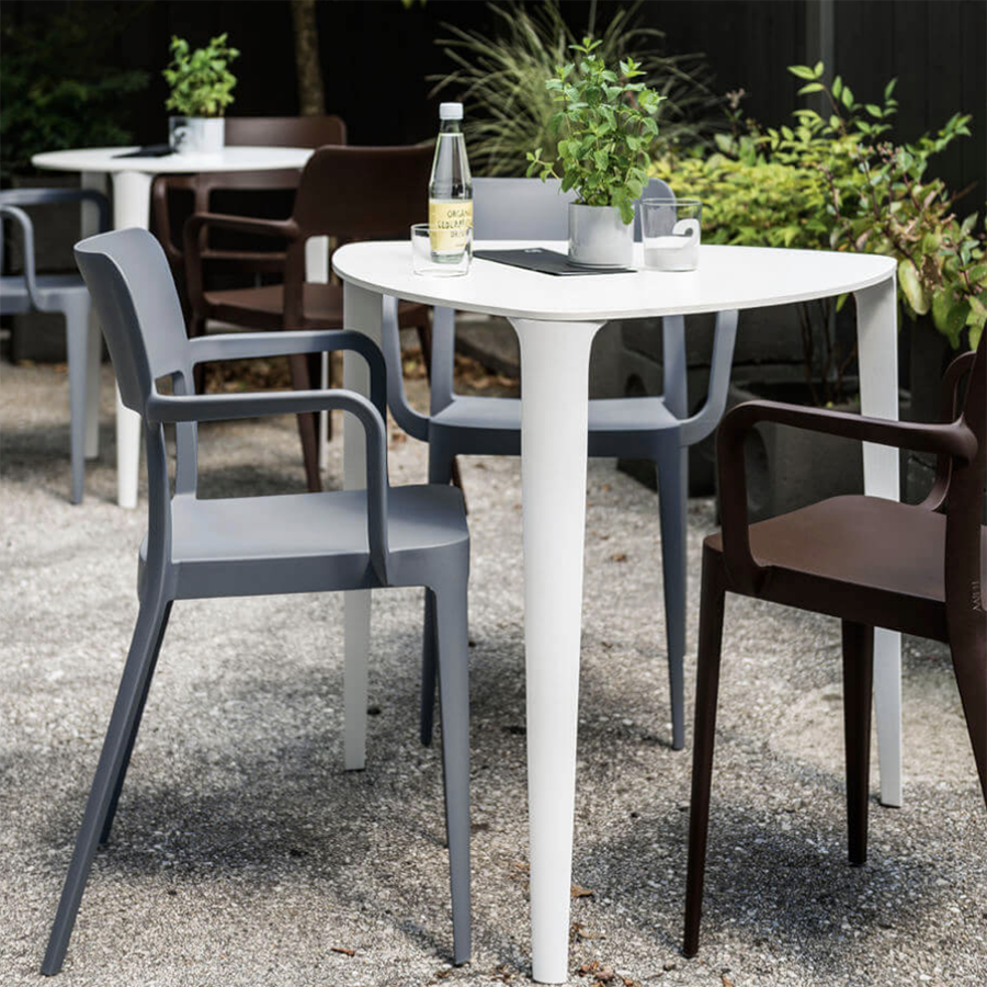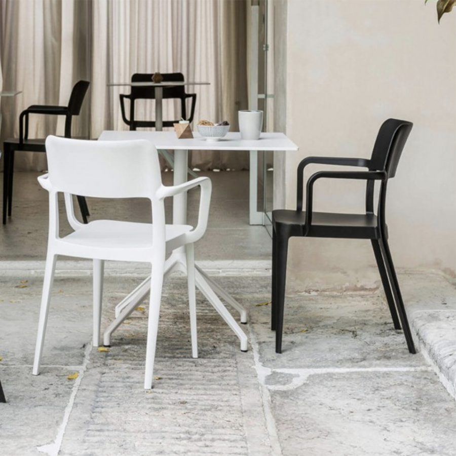Es ist für den Außenbereich geeignet und in verschiedenen Farben erhältlich. Stapelbar bis zu zehn Einheiten. Es hat auch eine CATAS-Zertifizierung.