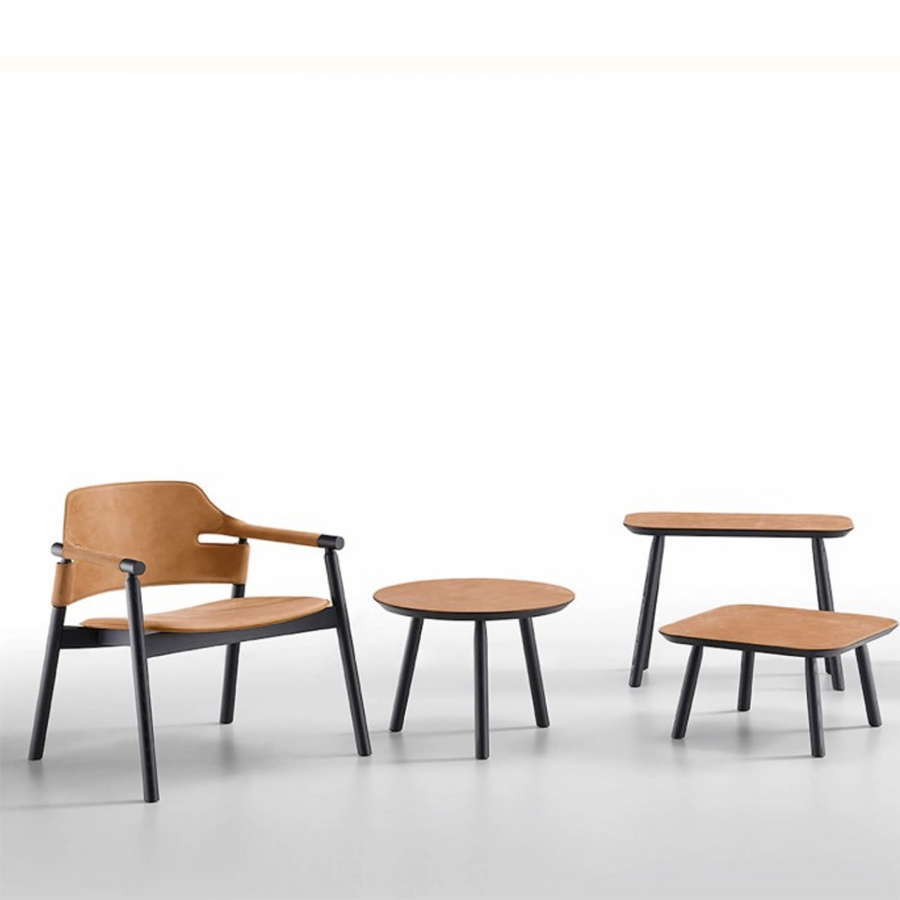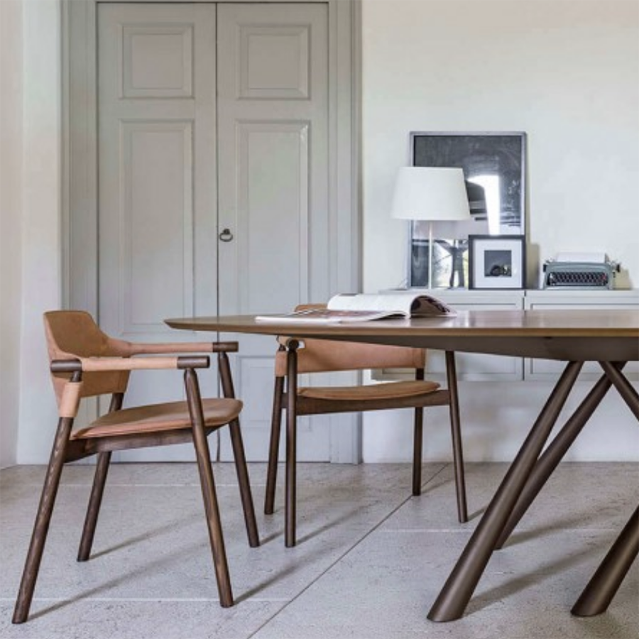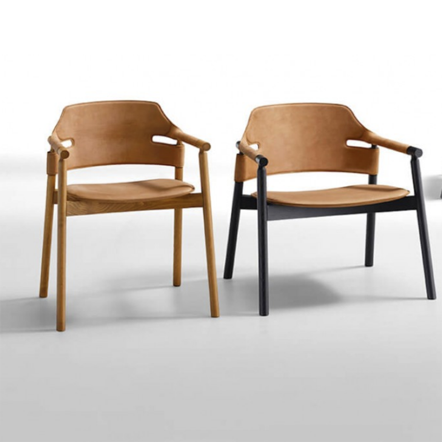 Sessel mit gebeizter Eschenholzstruktur. Sitz und Rückenlehne aus Leder oder toskanischem Leder. Version „Warten“ verfügbar.