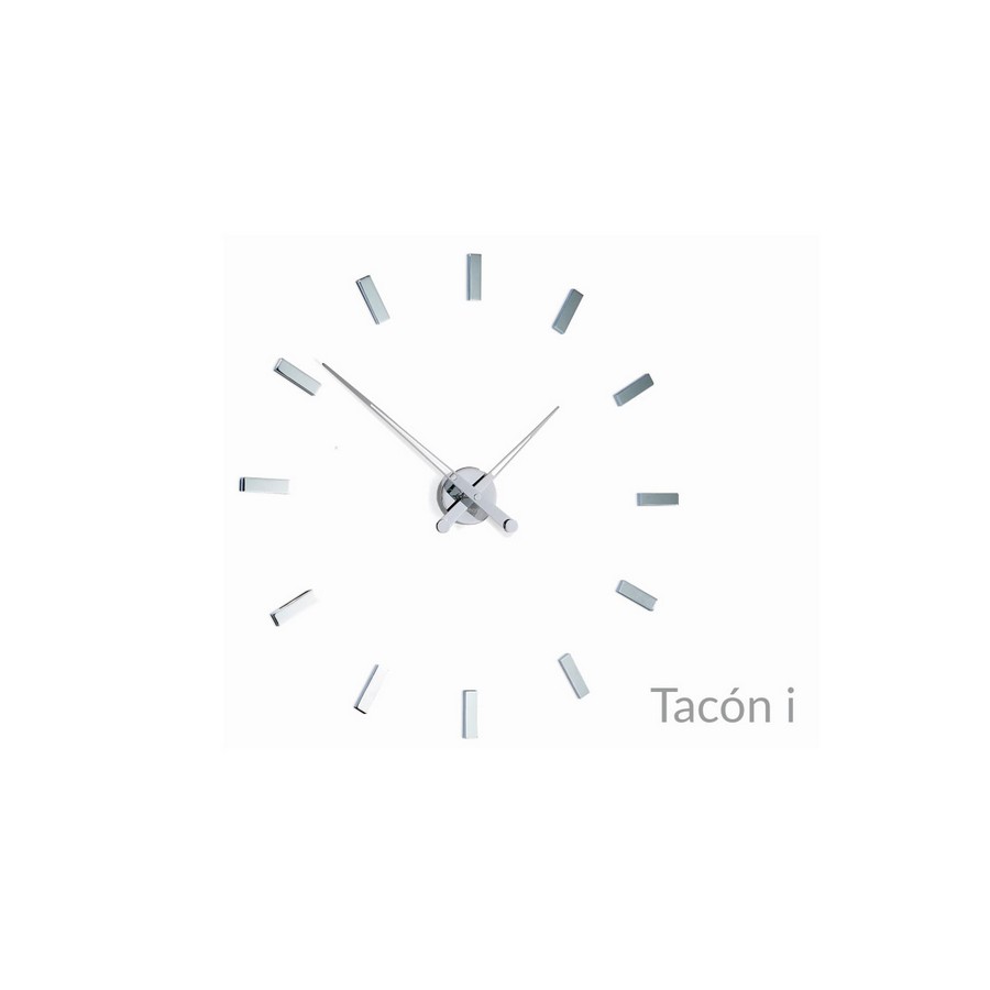 Tacon Wanduhr von Nomon, entworfen von der Designerin Josè Maria Reina, um Ihrem Raum Eleganz und einen Hauch von Modernität zu verleihen. Erhältlich mit 4 oder 12 Indikatoren, in verchromtem Stahl, in satiniertem Gold oder Graphit lackiert, mit Zeigern in verchromtem Stahl, rotem, schwarzem, weißem Stahl oder in Walnuss- oder Wengè-Holz oder in lackiertem Walnussholz. Alle Nomon-Uhren verwenden ein in Deutschland hergestelltes Quarzwerk.