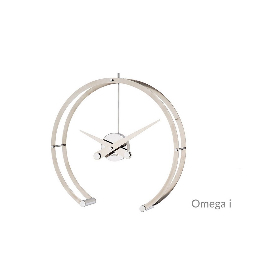Omega Tischuhr von Nomon mit modernem und originellem Design und gleichzeitig einfach und unverzichtbar. Es ist in Messing erhältlich, das sorgfältig poliert wurde, um sein Aussehen zu verfeinern und es vor Oxidation zu schützen, während seine ästhetischen und exklusiven Eigenschaften erhalten bleiben, oder in Stahl, der sowohl aus funktionalen als auch aus ästhetischen Gründen verchromt ist. Omega ist eine Uhr mit wesentlichen Funktionen, die jedoch Ihre Umgebung verbessern und verschönern kann, indem sie Ihnen auch dank des deutschen UTS-Mechanismus immer die richtige Zeit anzeigt.