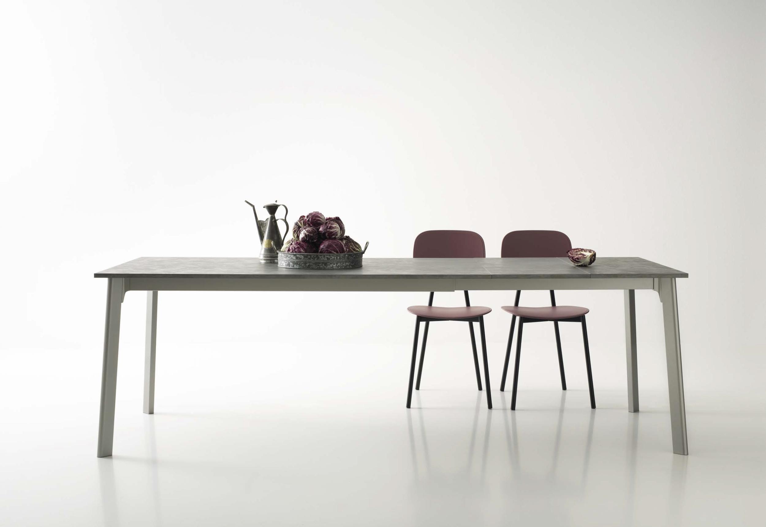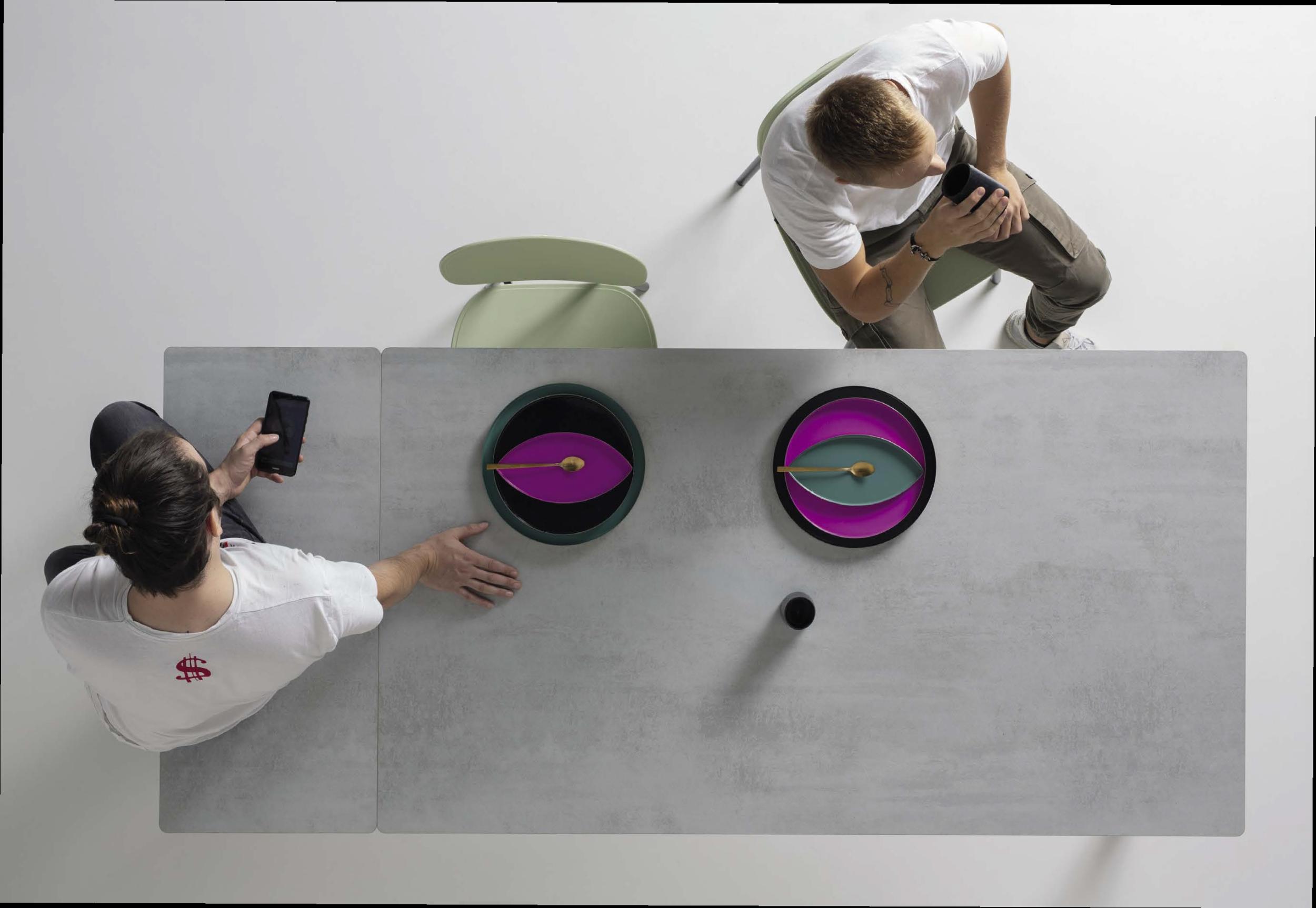 Tisch mit Metallstruktur und halbovalen Aluminiumbeinen, leicht geneigt. Wahlmöglichkeit zwischen rechteckiger oder abgerundeter Platte, erhältlich in Melamin, Laminat, Glas oder Keramik. Der Otello-Tisch eignet sich für jede Umgebung und bietet unendliche Kombinationsmöglichkeiten zwischen Struktur und Tischplatte in verschiedenen Größen, um sich optimal an jeden Bedarf anzupassen.