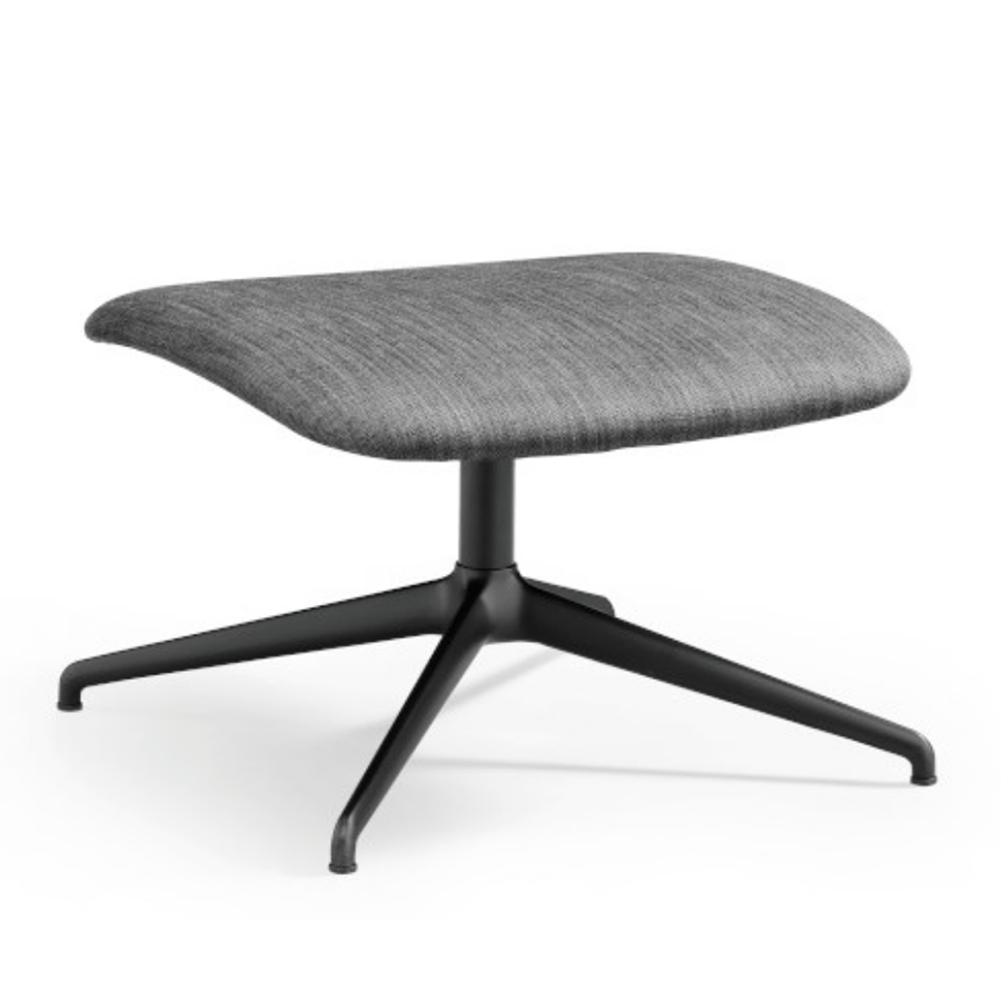 Fußhocker aus der P47-Kollektion, ideal kombinierbar mit dem P47 APA GX TS-CU Warteloungesessel. Sitz mit Leder, Kunstleder, Stoff oder Kundenstoff bezogen. Bockgestell mit vier Metallspeichen.