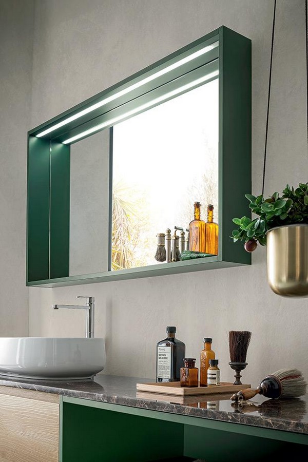 SPQ120 Rahmenspiegel mit Touch-LED (matt englischgrün) L.120xP.13xH.70