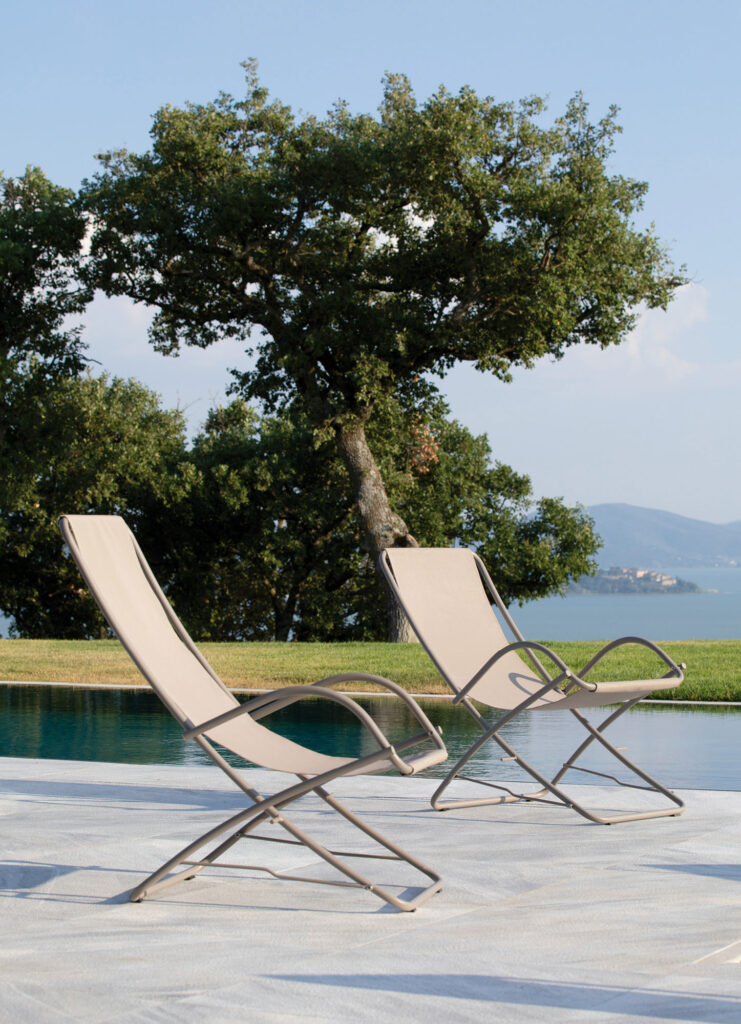 Geschwungene Linien, die sich kreuzen und ausbalancieren, ergeben einen Liegestuhl, der eine Hymne an Komfort und Entspannung ist. In einem Sitz, der Flexibilität und Leichtigkeit bietet, sind unzählige Farb- und Oberflächenkombinationen möglich.