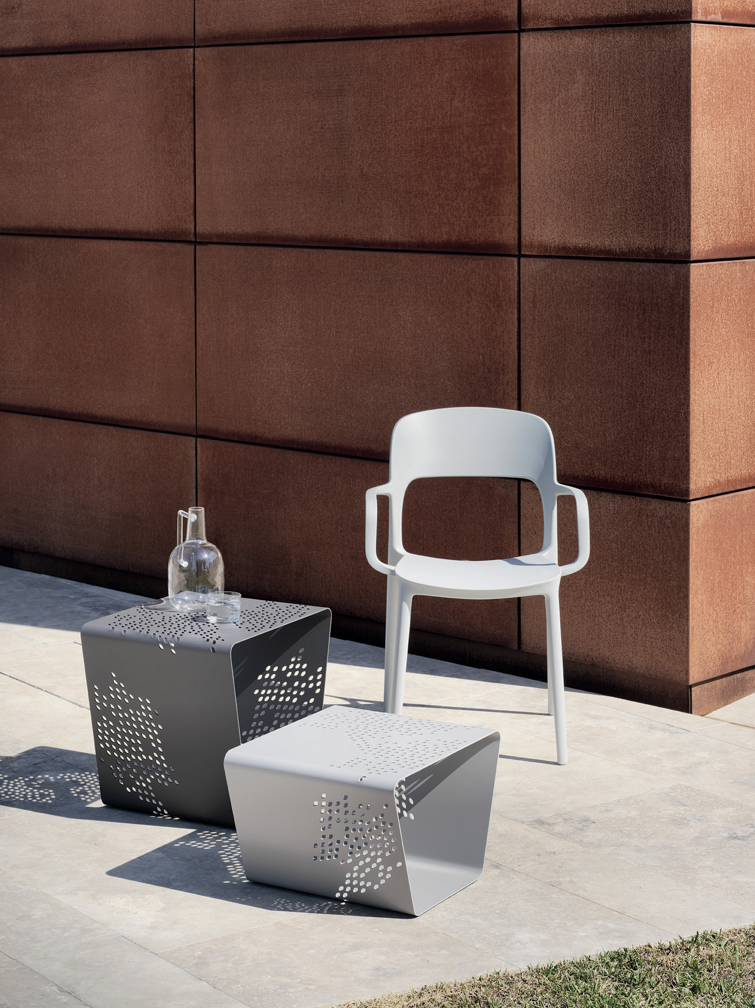 Pattern von Bontempi ist ein handgefertigter Couchtisch, der die Terrasse oder den Garten verschönern kann, aber auch ein Hocker-Zeitschriftenständer ist. Pattern besteht aus lackiertem Stahl und ist in verschiedenen Farben und in zwei Größen erhältlich.