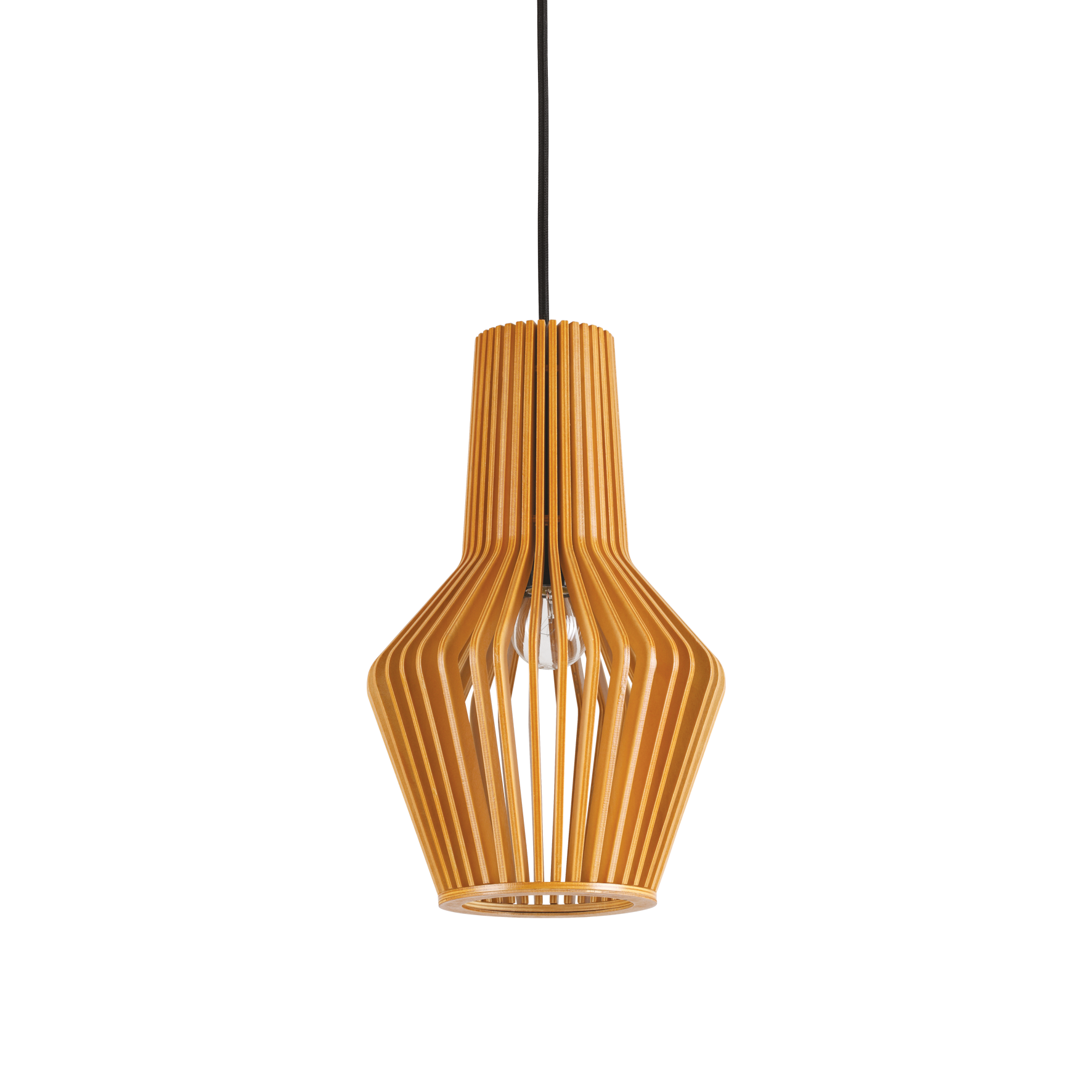 Citrus-1 SP1 Kronleuchter mit Leuchtenkörper mit lackierten Sperrholzelementen. Schwarzes Stoffkabel. Glühbirne ausgeschlossen.