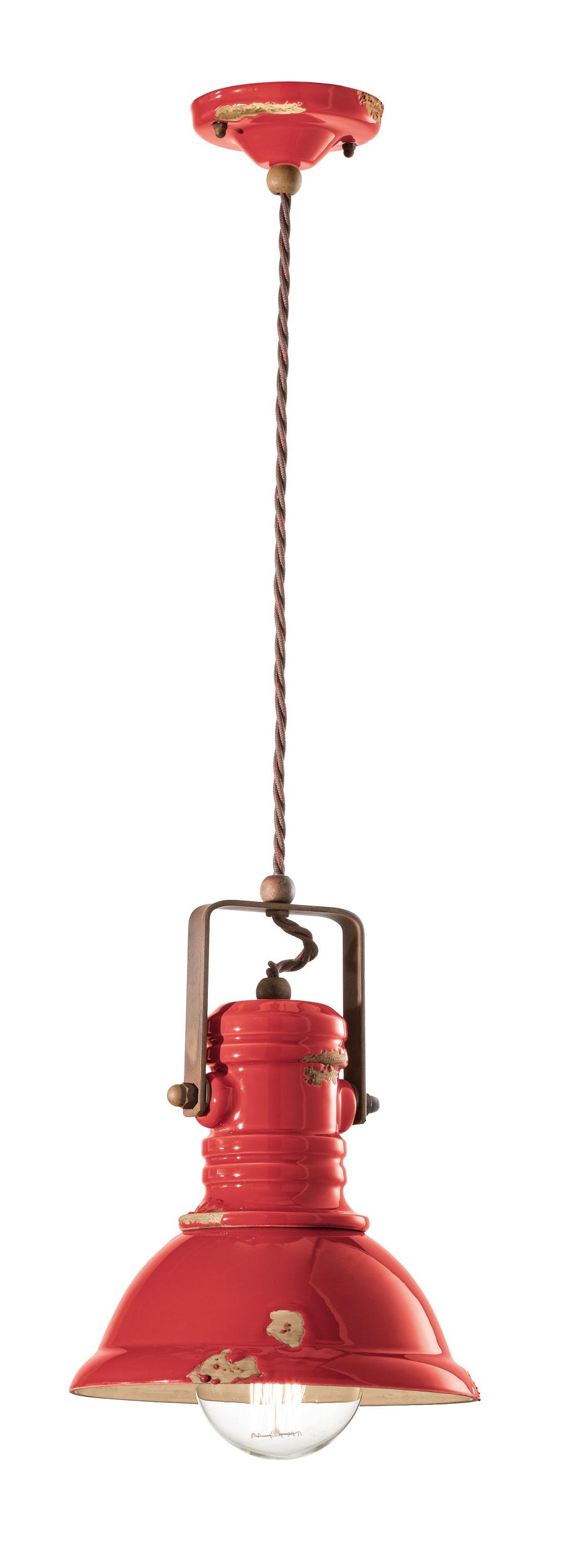 Hängeleuchte d.23 RETRO' INDUSTRIAL C1691 von Ferroluce. Keramiklampe mit Metallteilen aus antikem Corteneisen und ummanteltem Baumwollkabel.