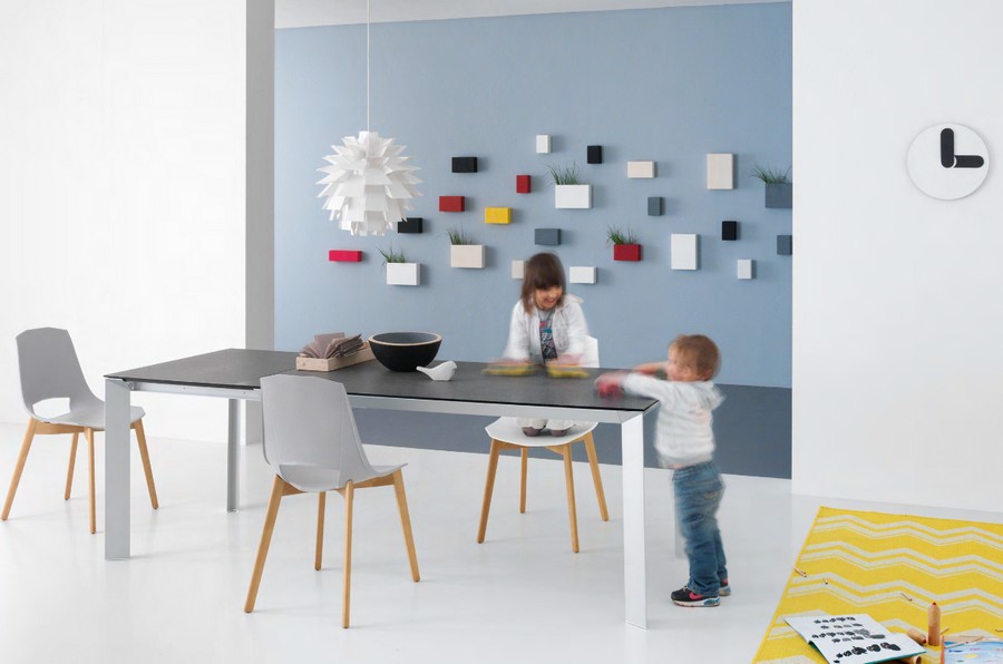 Der ausziehbare Diamante-Tisch von Point House hat eine eloxierte oder lackierte Aluminiumstruktur. Der Ausziehmechanismus ist außen auf Aluminium-Kugelführungen montiert, die Verlängerung besteht aus dem gleichen Material und hat die gleiche Oberfläche wie die Oberseite. Die Besonderheit des Tisches sind die Ecken bzw. die Eckverbindungen, die eine echte Verfeinerung darstellen und aus Aluminium-Druckguss mit einer zur Struktur passenden lackierten Oberfläche bestehen, mit Ausnahme der Struktur aus eloxiertem Aluminium, bei der die Ecken eine polierte Chromoberfläche haben. Das Design des Diamante-Tisches von Point ist geradlinig und passt sich gut den Räumlichkeiten des Hauses an.