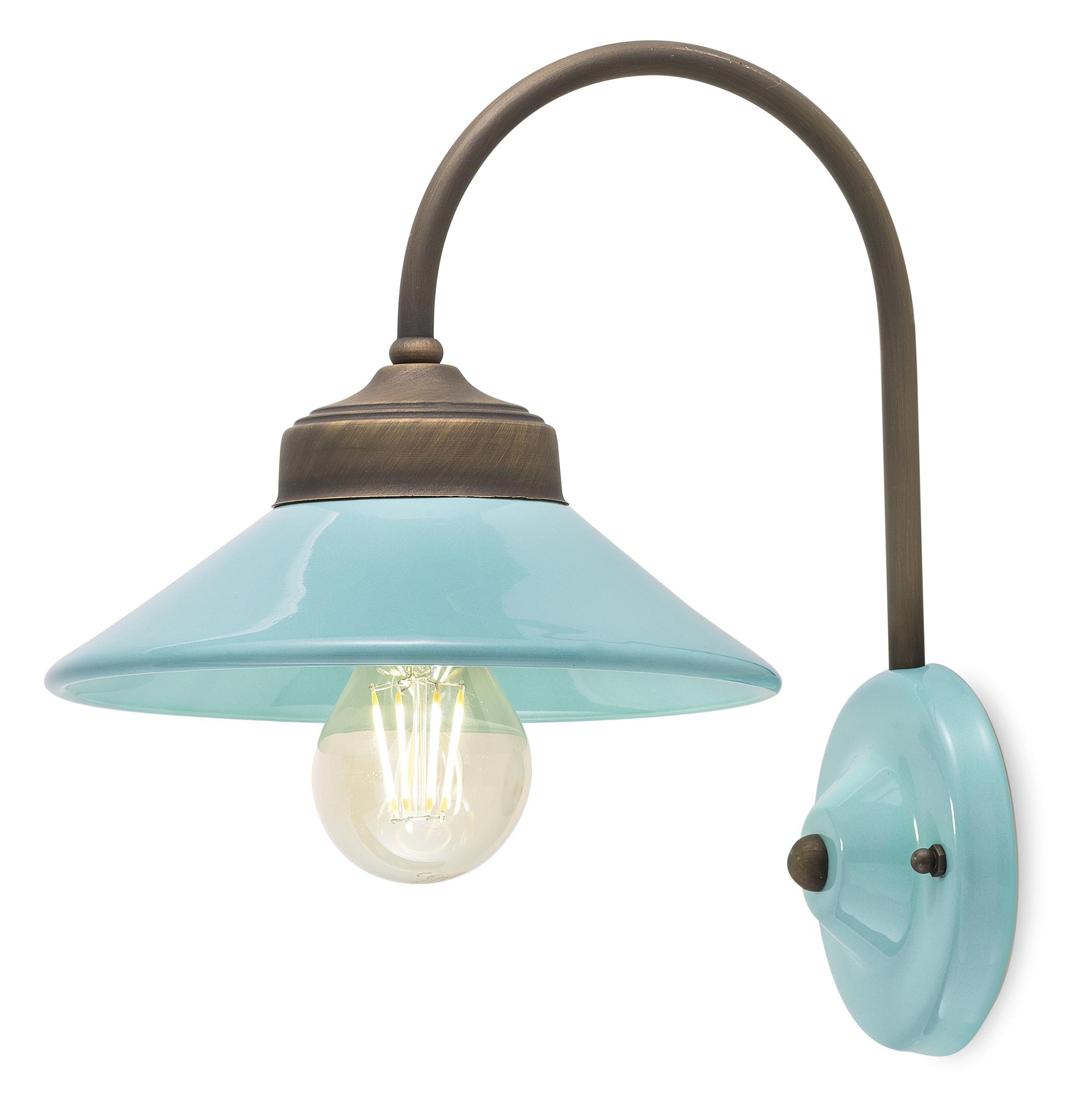 RETRO' COLORS C1630 Wandleuchte von Ferroluce mit satiniertem Messingrahmen, Keramiksockel, Keramikplatte, Art der Lackierung: Brünieren und Sprühlackieren.